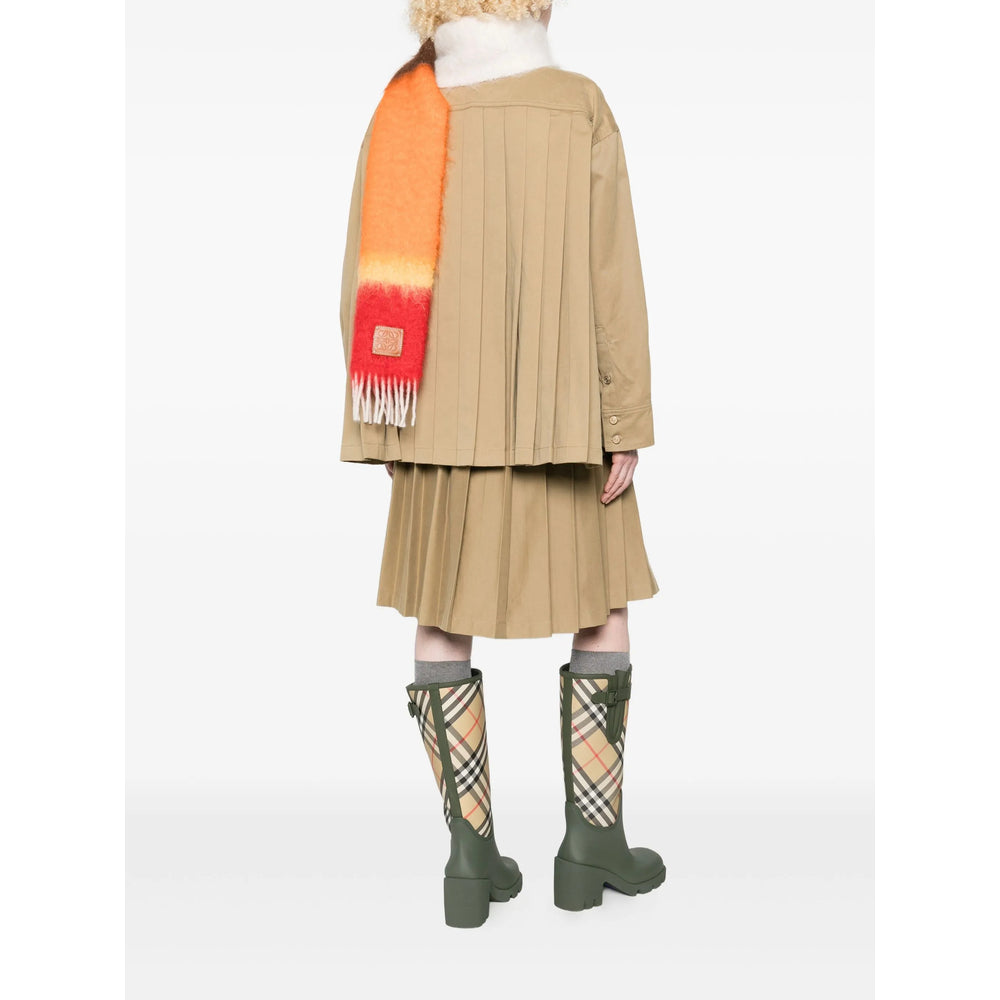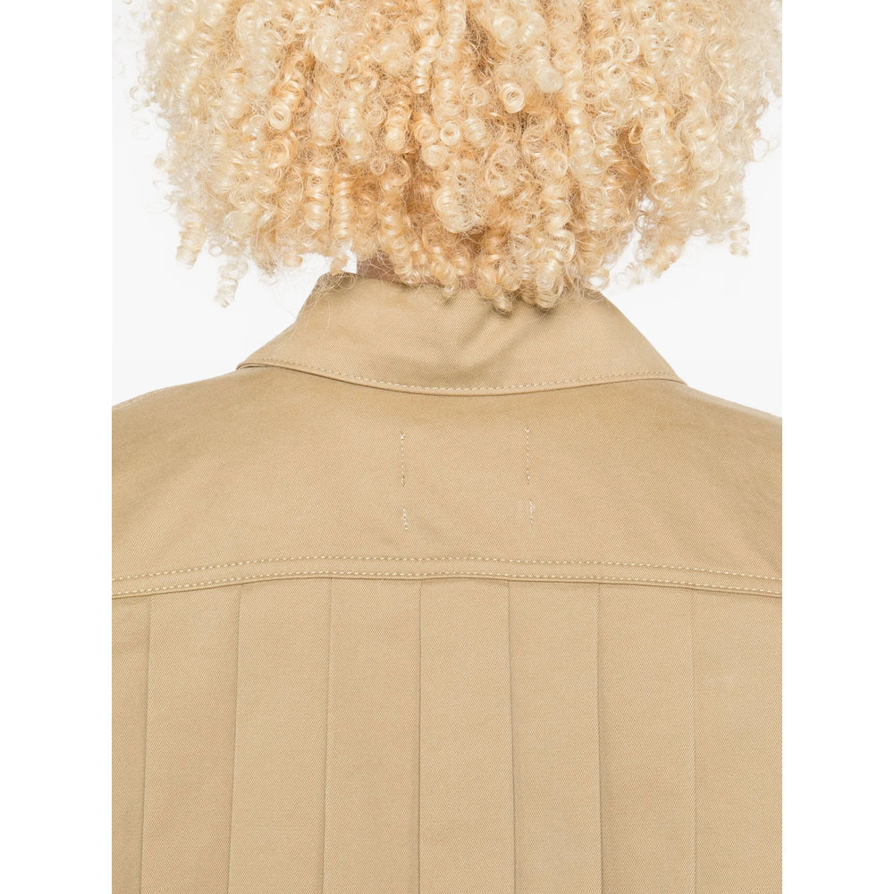 beige pleated back front button fastening long sleeves classic collar boxy shape