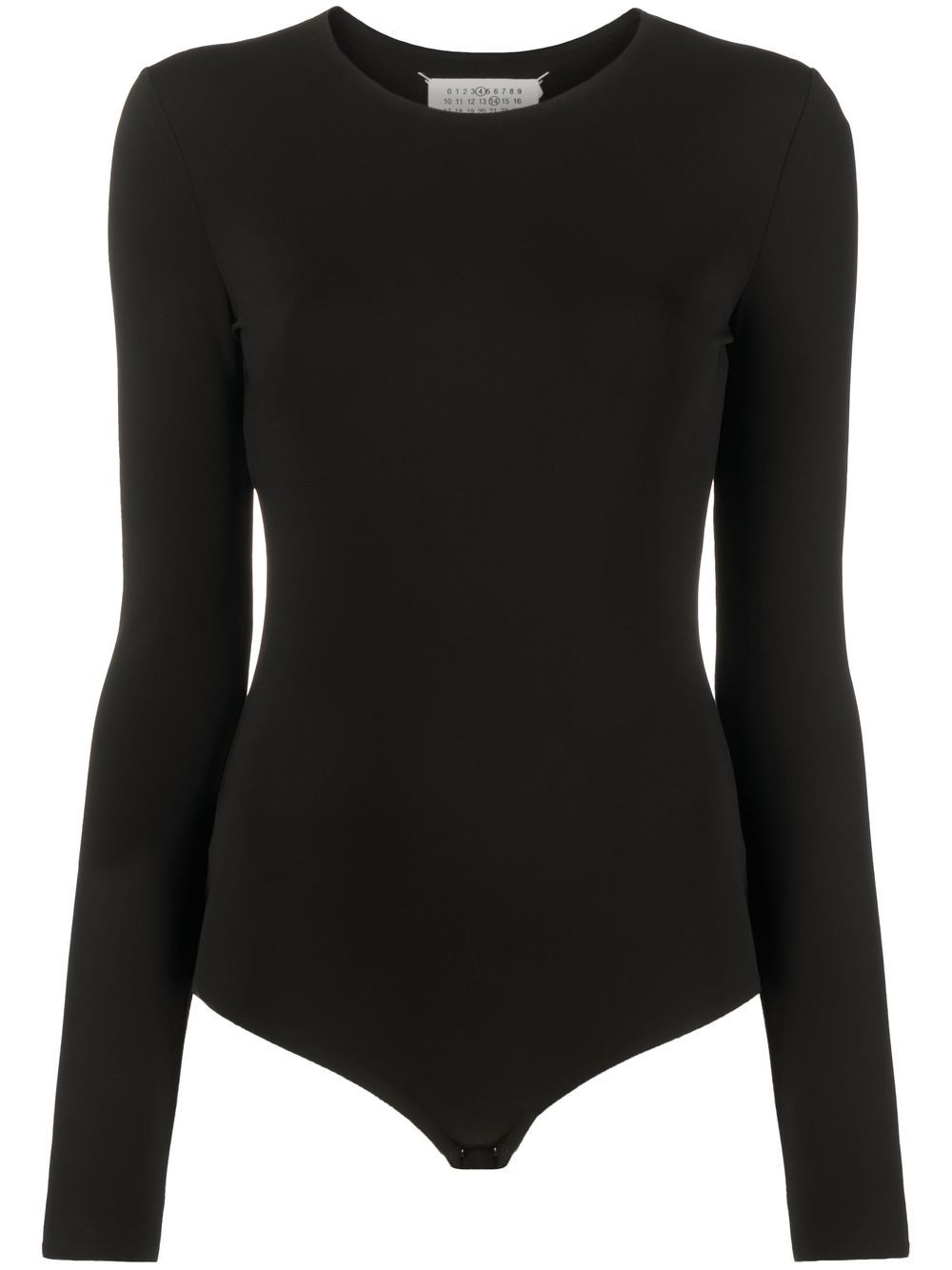 body a maniche lunghe con scollo tondo body a maniche lunghe con scollo tondo di Maison Margiela caratterizzato da nero, girocollo, maniche lunghe e caratteristico logo a quattro punti. Origine: Italia Composizione Viscosa 96%, Elastan 4% Istruzioni per il lavaggio Lavare una mano Marca identificativa: SI0NA0002S23976