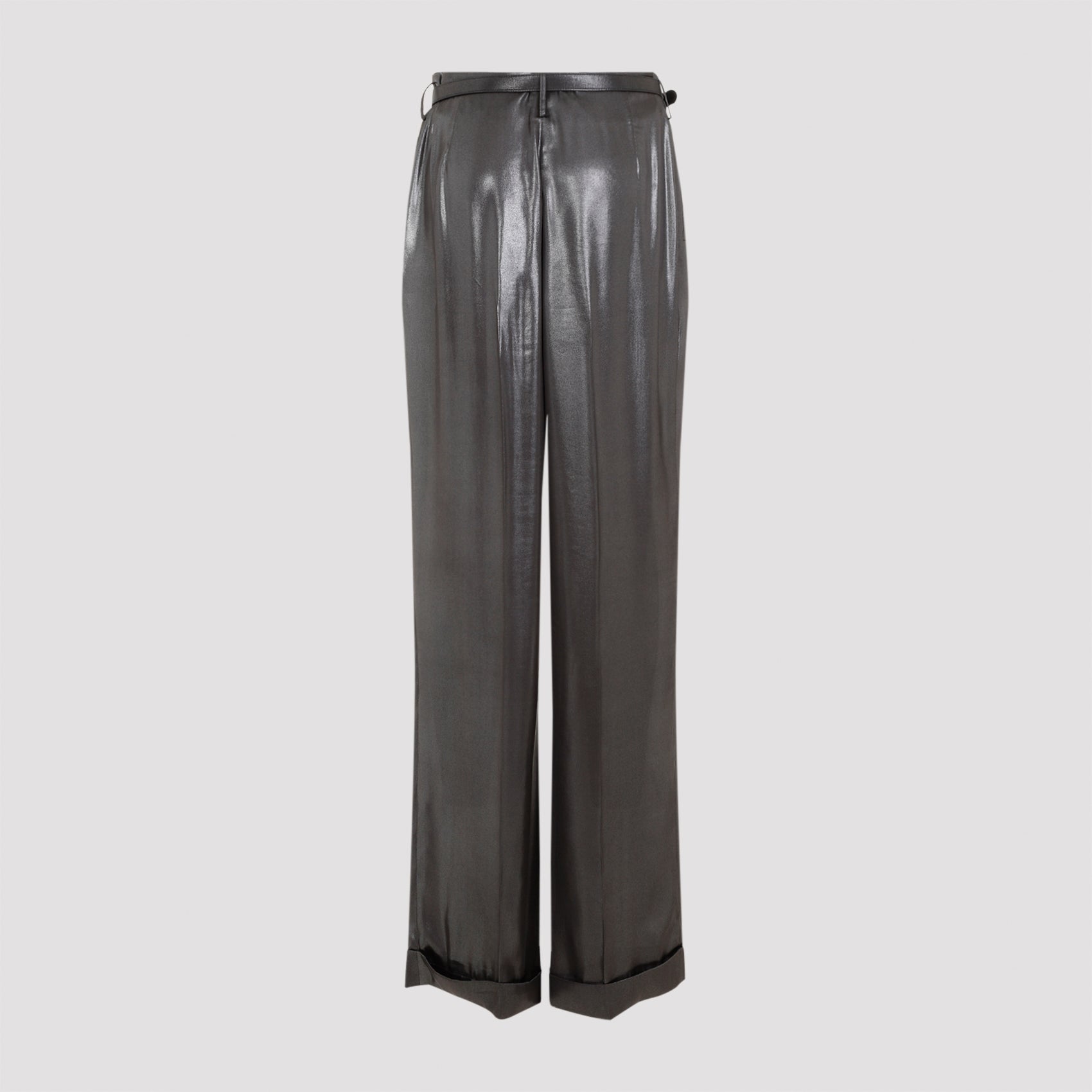 Ralph Lauren Collection Asteroid Grey Acklie Pleated Pants. Crafted in polyester fabric. Front concealing zipped fastening, belt loops, tonal belt, side pockets, front pleated design, rolled-up hem.