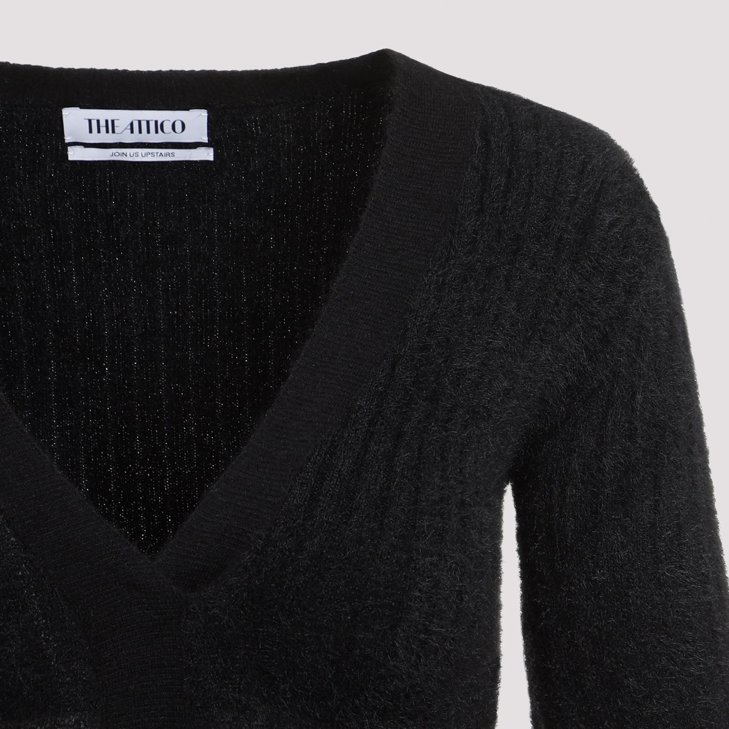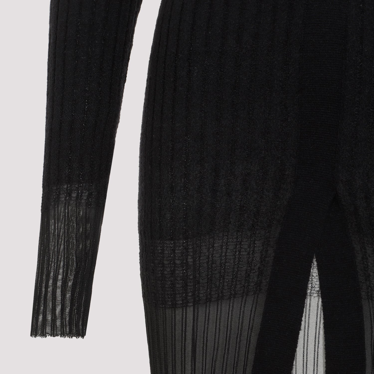 The Attico Black Degrade Midi Dress. Crafted in polyamide, mohair, polyester and wool blend. V-neck, ribbed design, long sleeves, front slit detail, midi length, straight hem. Lace details on the cuffs, in the middle and in the lower lateral part.