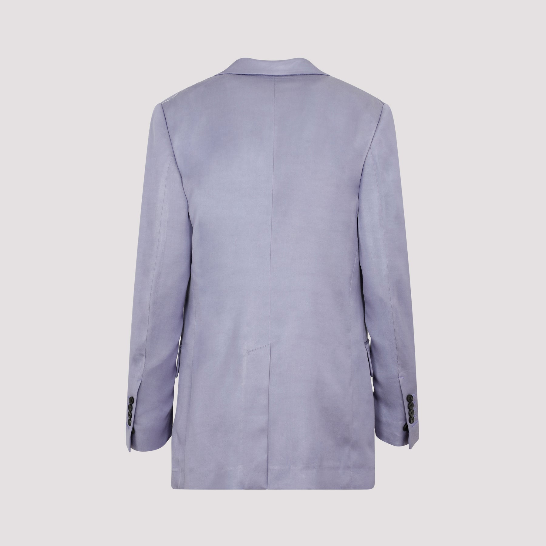 Tom Ford Purple Soft Fluid Twill Boyfriend Jacket. Crafted in pure pale Parma violet viscose. Notched neckline, long sleeves, buttoned cuffs, front button fastening, back vent, two front flap pockets, one welt chest pocket, rounded hem, partially lined.