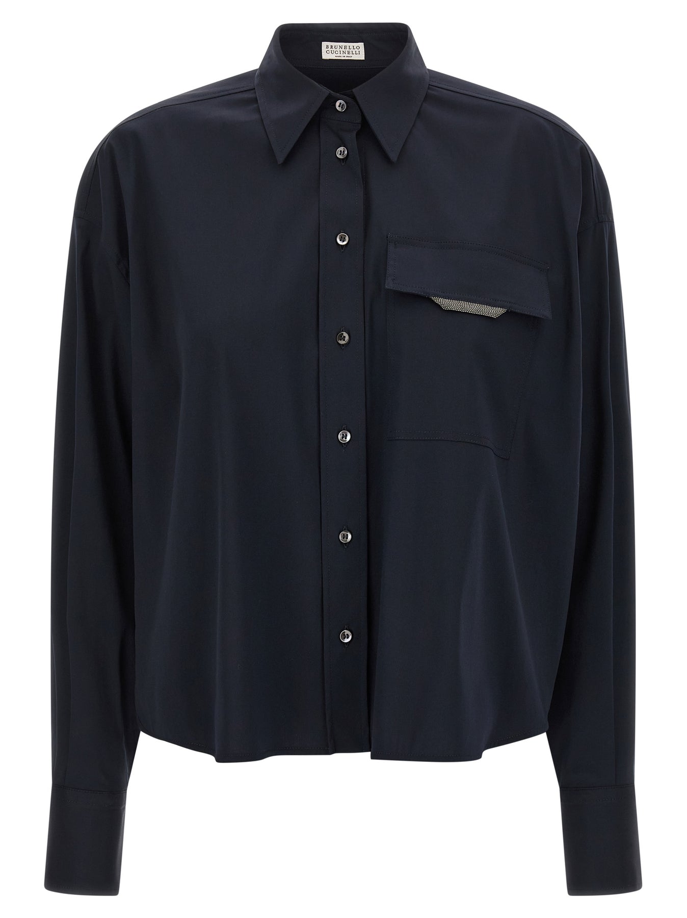 Brunello Cucinelli Shiny Flap Detail Camicie - Blu | a6eba2a44f0f5a9e39c1083a8feb0a99fa26837d