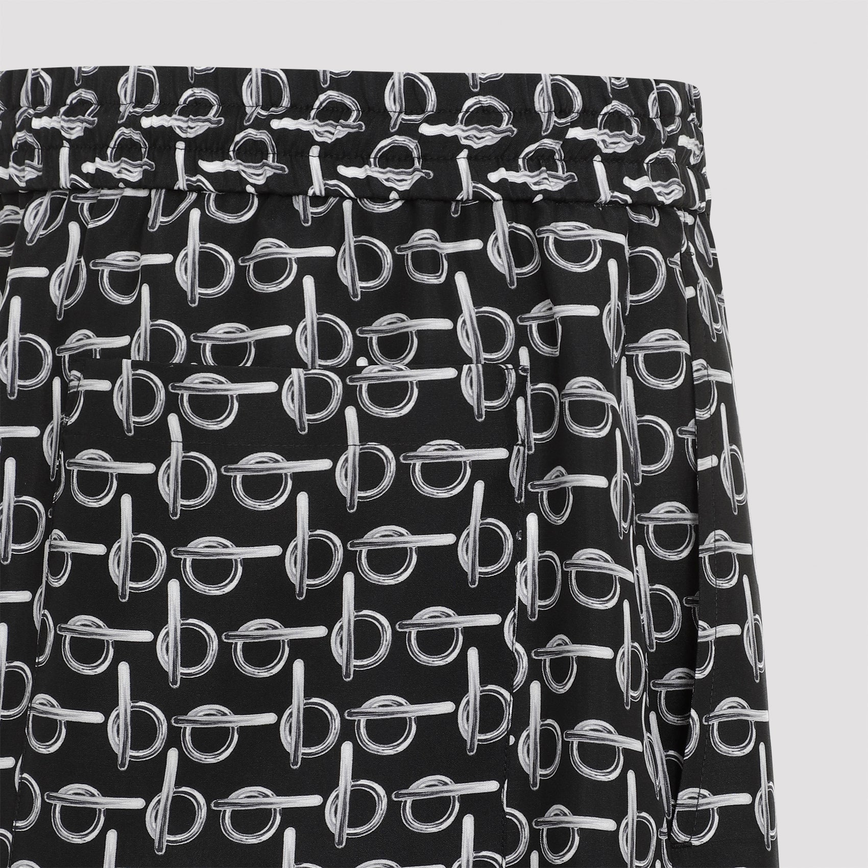 Burberry Silver and Black Silk Shorts. Silver and Black Silk with signature printed pattern all over, elastic waistband, side seam pockets, wide legs, relaxed fit.