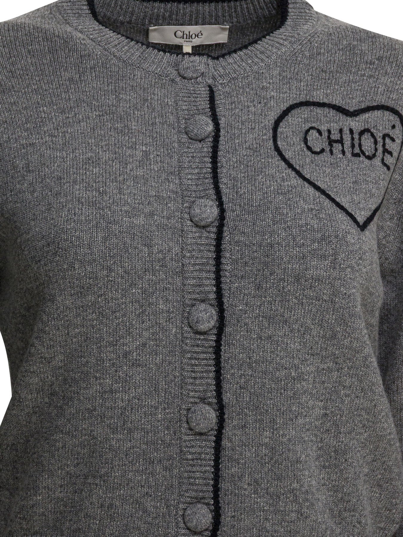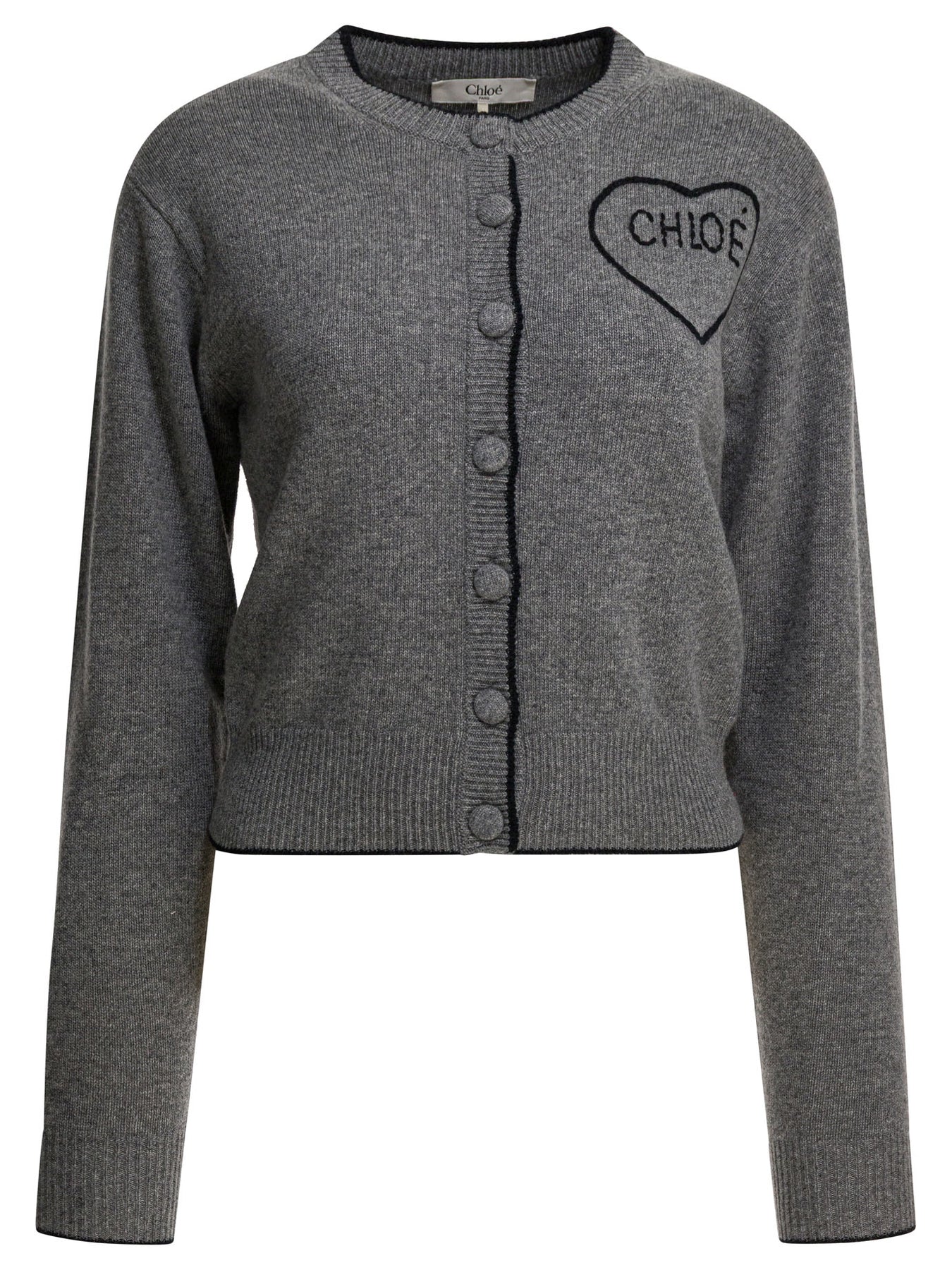 Chloé Wool And Cashmere Cardigan With Logo Knitwear - Grey | df5cc8307296f00fbf4bad65c20a55d6c114c510