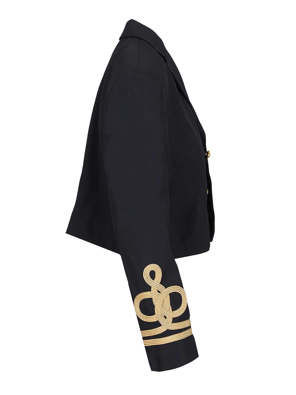 Double-Breasted Cropped Wool Jacket Coats Blu
