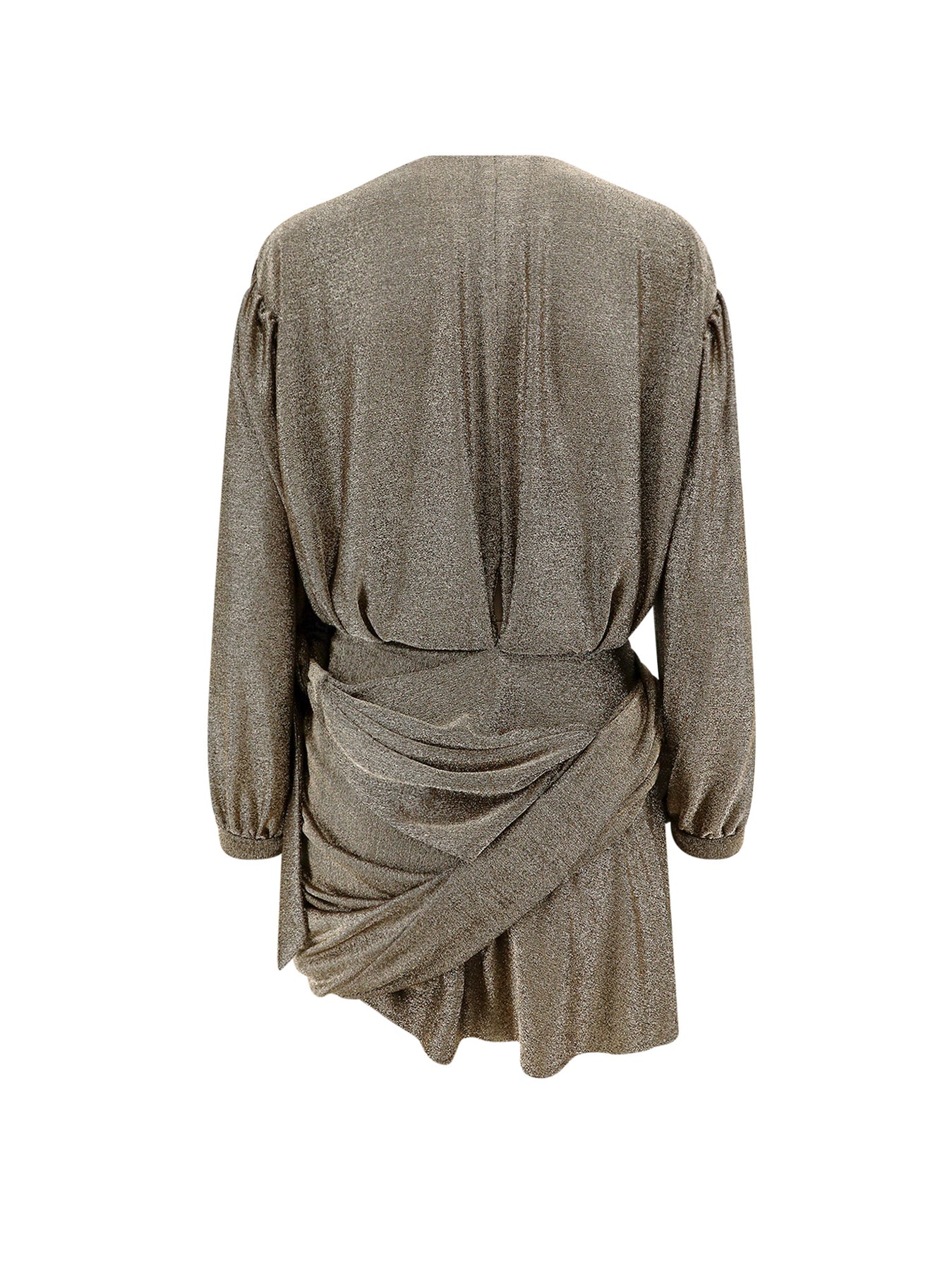 SKU: 772748TPV27_1075 - Closure with zip on the back and v-neckline balloon 3/4 sleeve drapery with knot detail made in italy 70% polyamide 26% metallised fibre 4% elastane