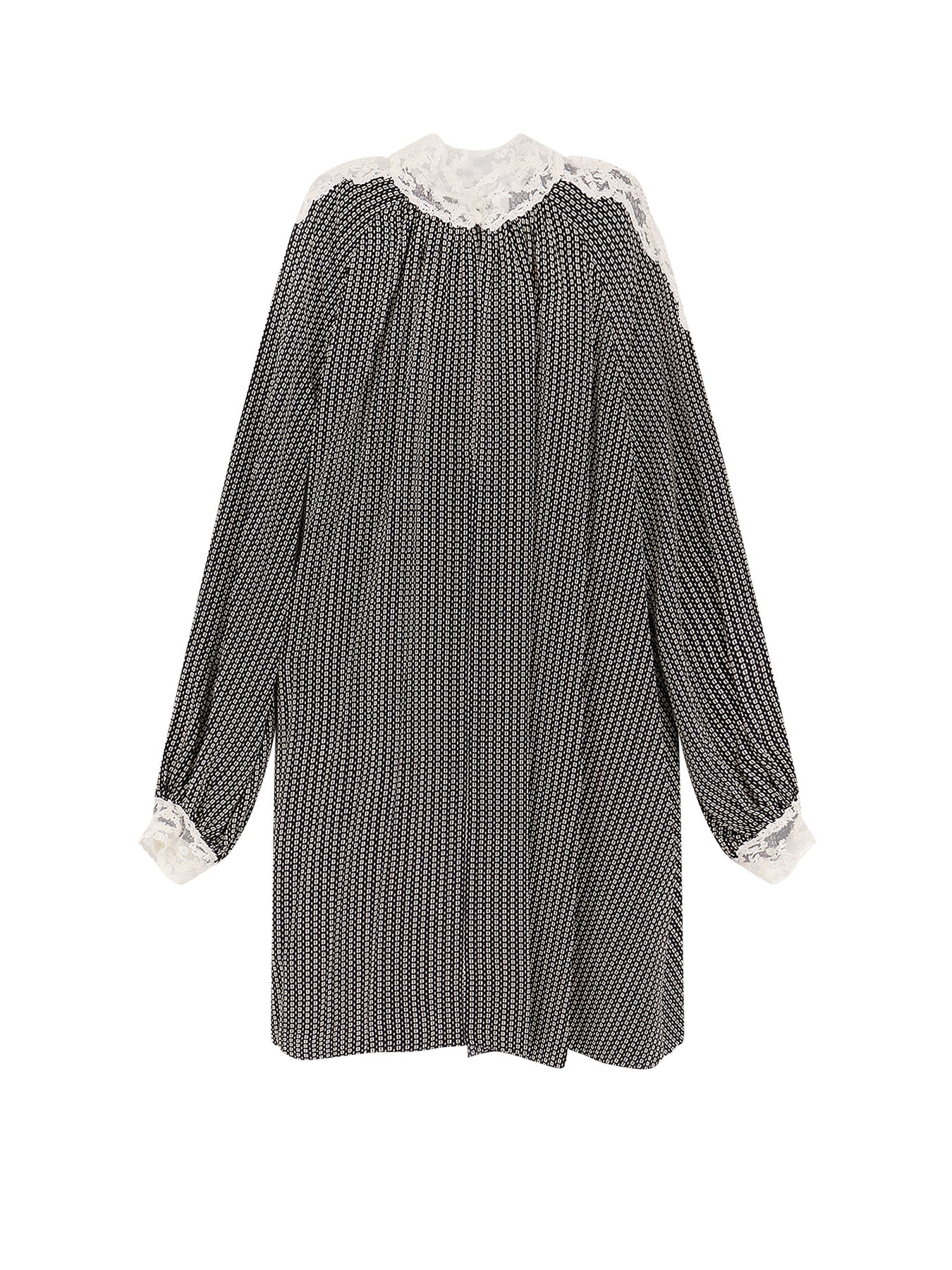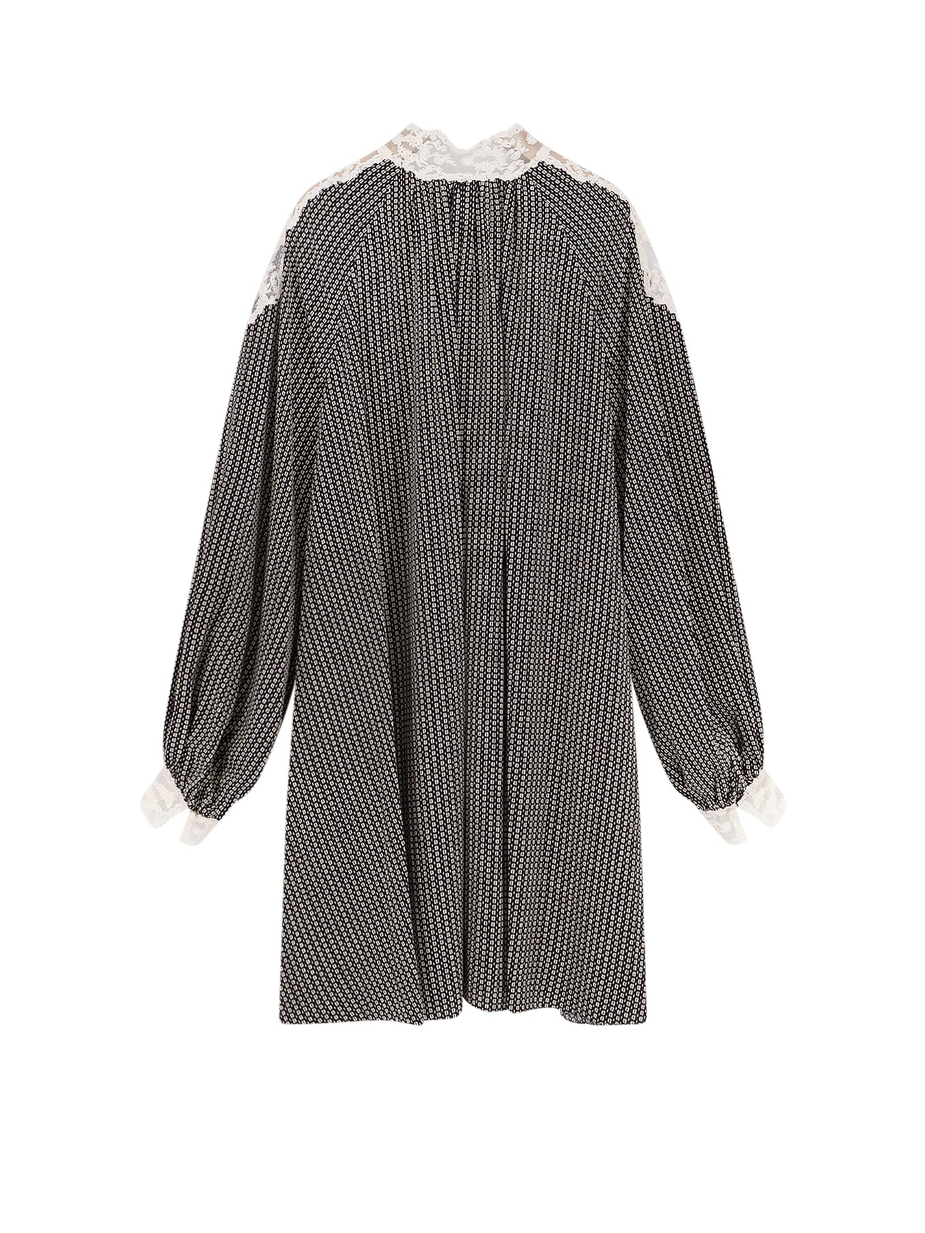 High lace collar Three covered buttons Long sleeves with lace cuffs Lace inserts Micro-pattern 100% organic silk SKU: CH25ARO28145905