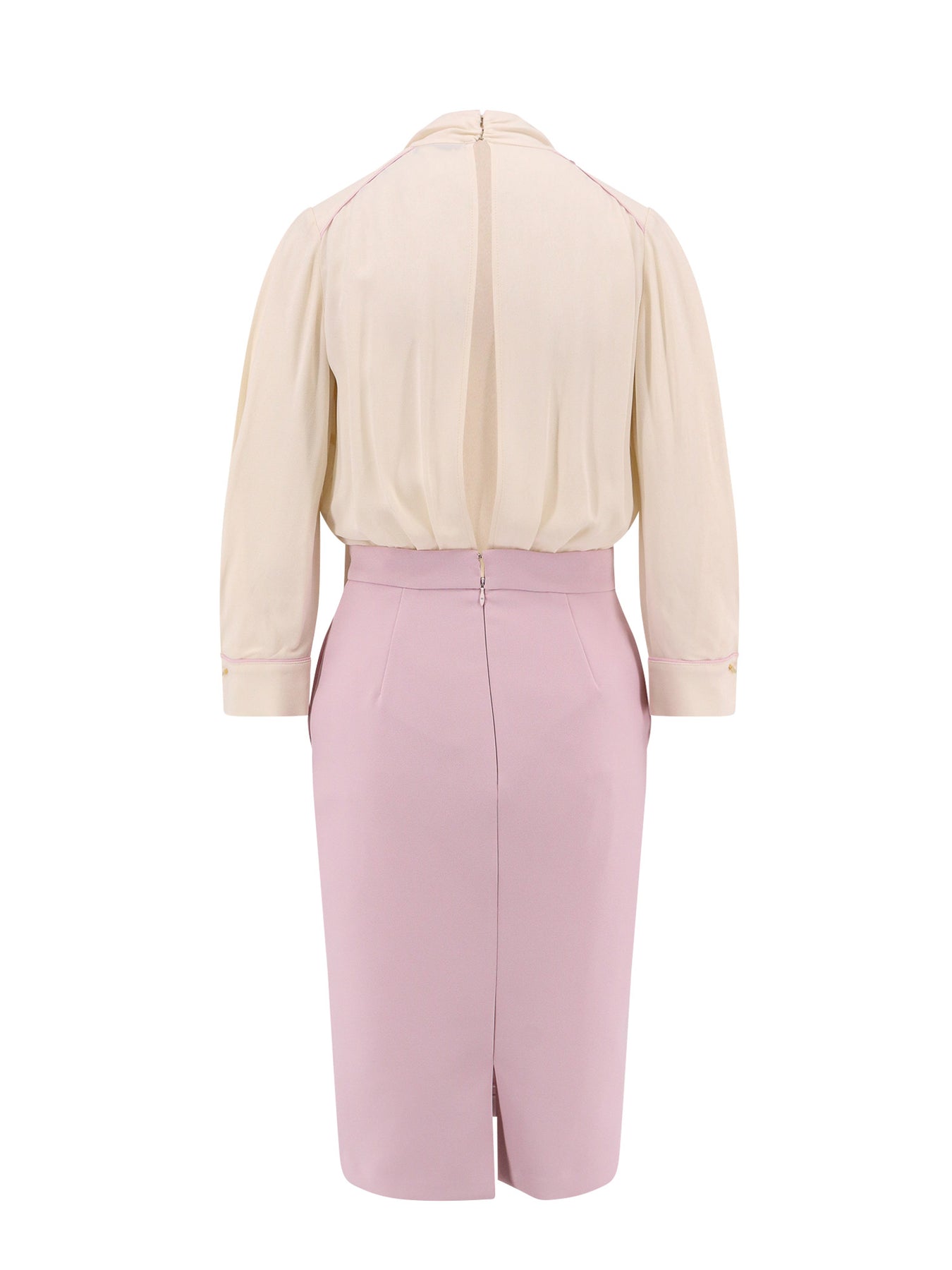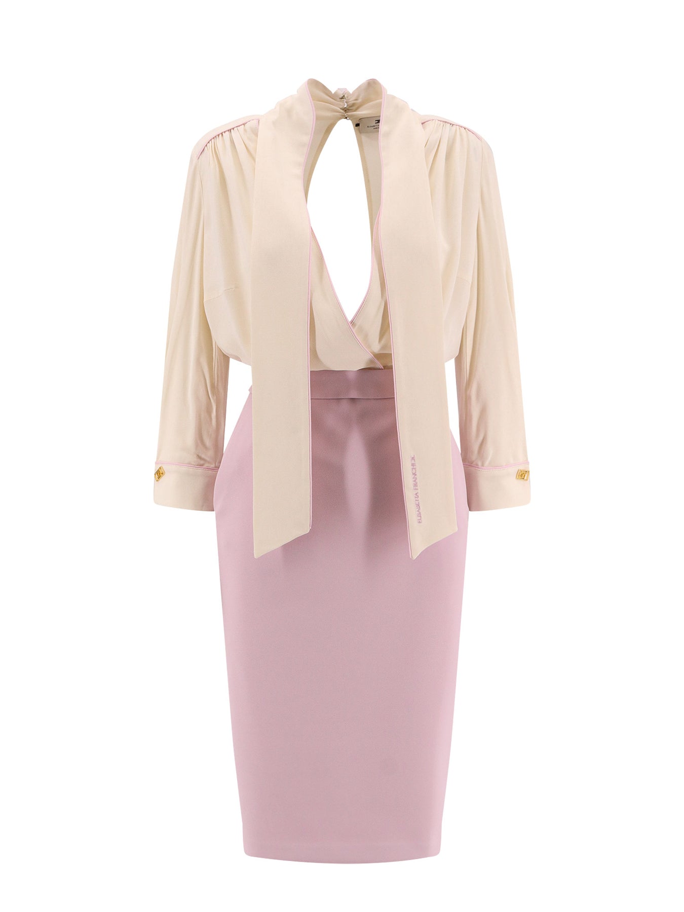 SKU: AB77151E2_DO5 - V-neckline with viscose band and logo embroidery long sleeves with cuff and cufflinks lined skirt with slit on the back made in italy 100% viscose /95% polyester 5% elastane