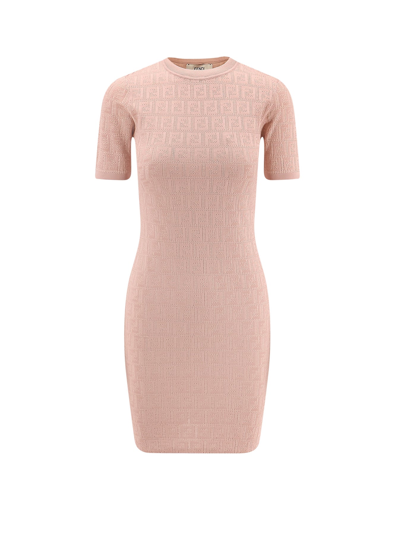 Ribbed crew-neck Short sleeves Fitted FF all-over motif Made in Italy 54% cotton 46% viscose SKU: FZDD61AUZRF1SAU
