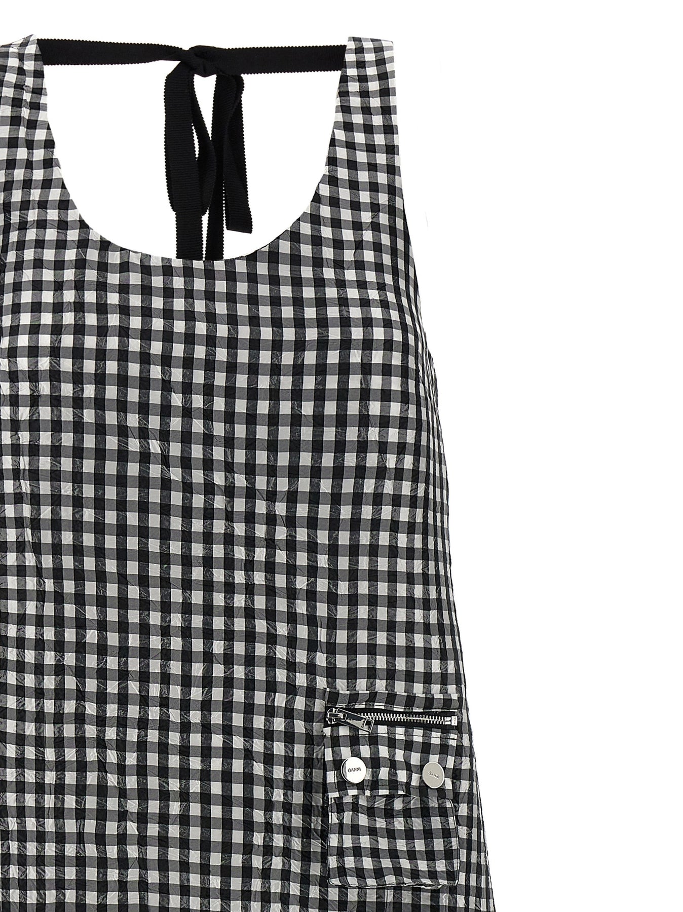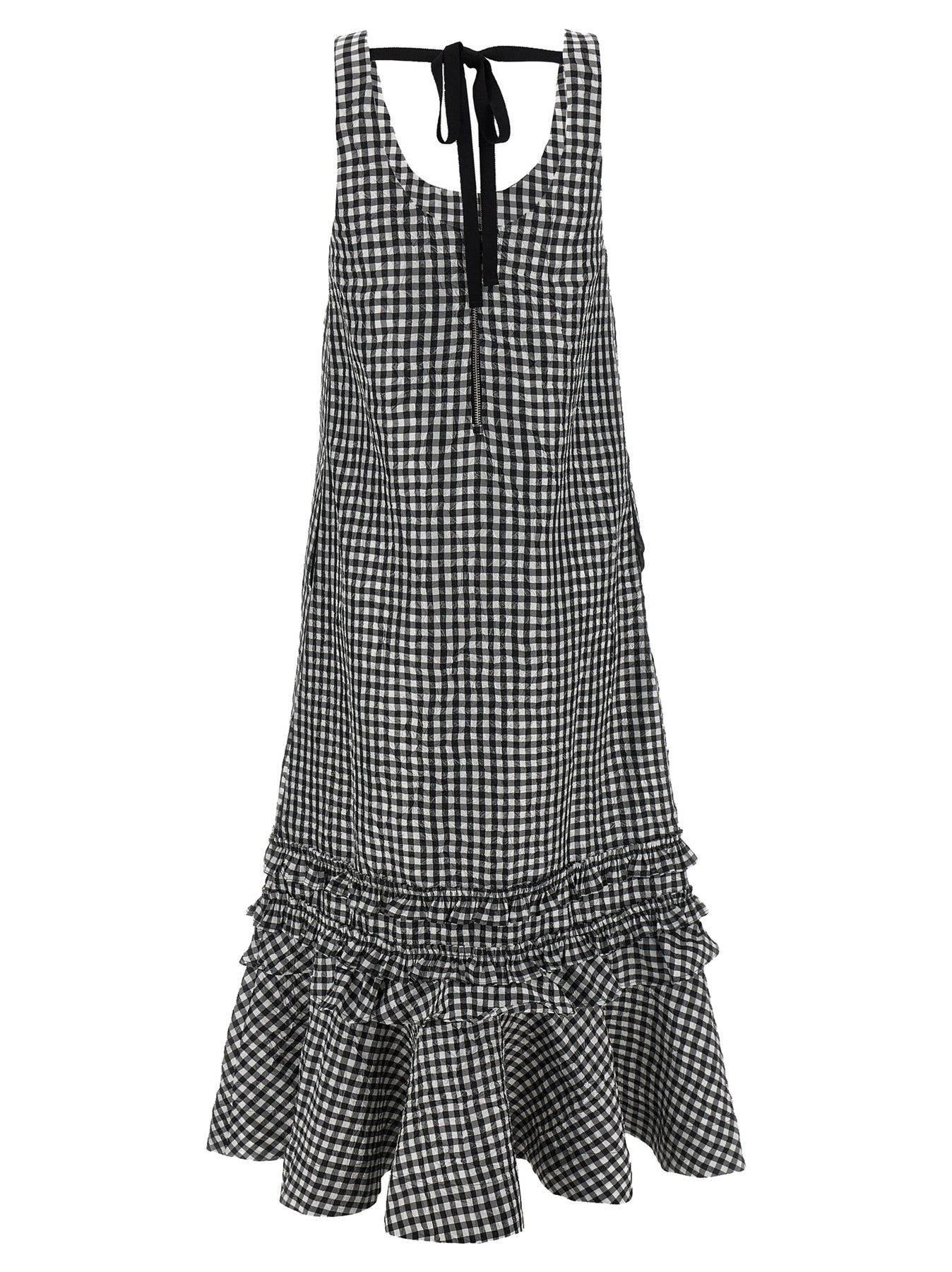 Crinkled Check Long Abiti Nero