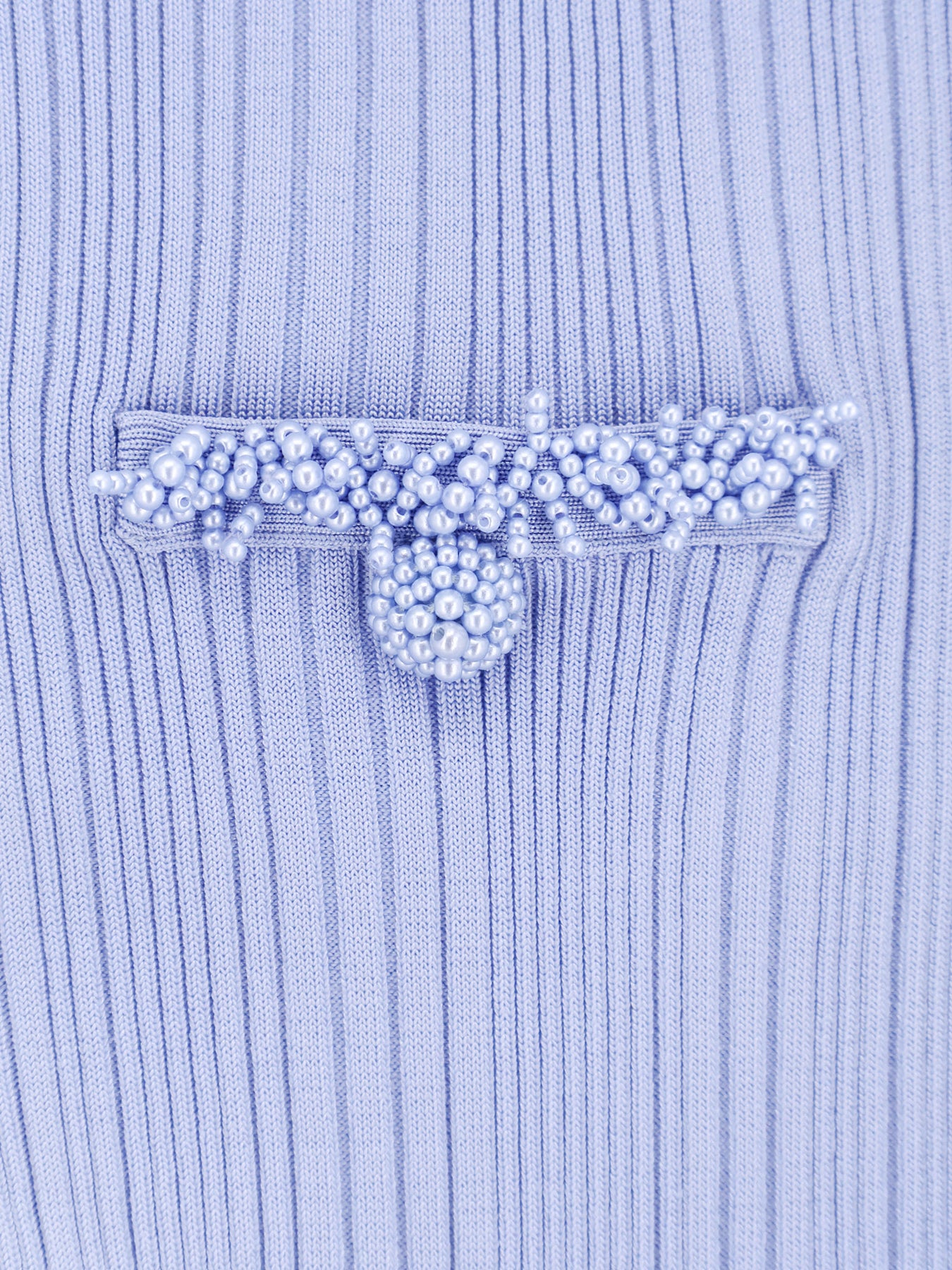 Metal hook closure Beaded trim Long sleeves with cuffs Four front pockets Padded shoulders 50% viscose, 32% polyester, 16% polyamide, 2% elastane SKU: RS26555SBLBLUE