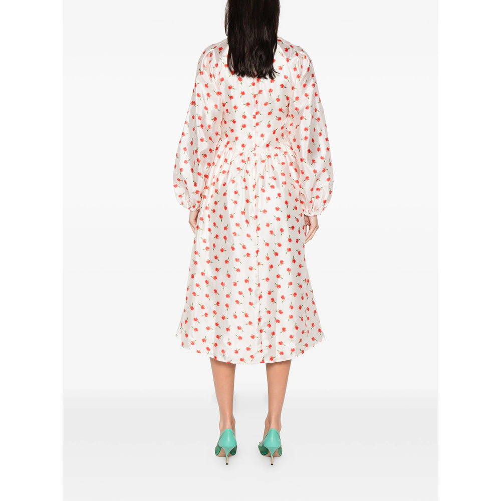 off-white floral print long sleeves gathered waist round neck elasticated cuffs