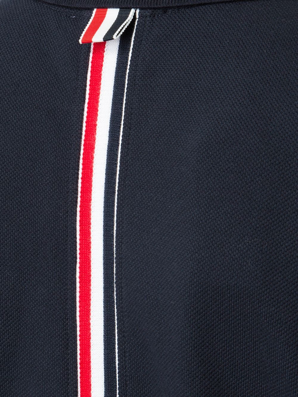 Navy blue cotton Striped Pique Polo Dress from Thom Browne featuring a classic polo collar, a signature tri-colour striped trim, a front button placket and short sleeves.