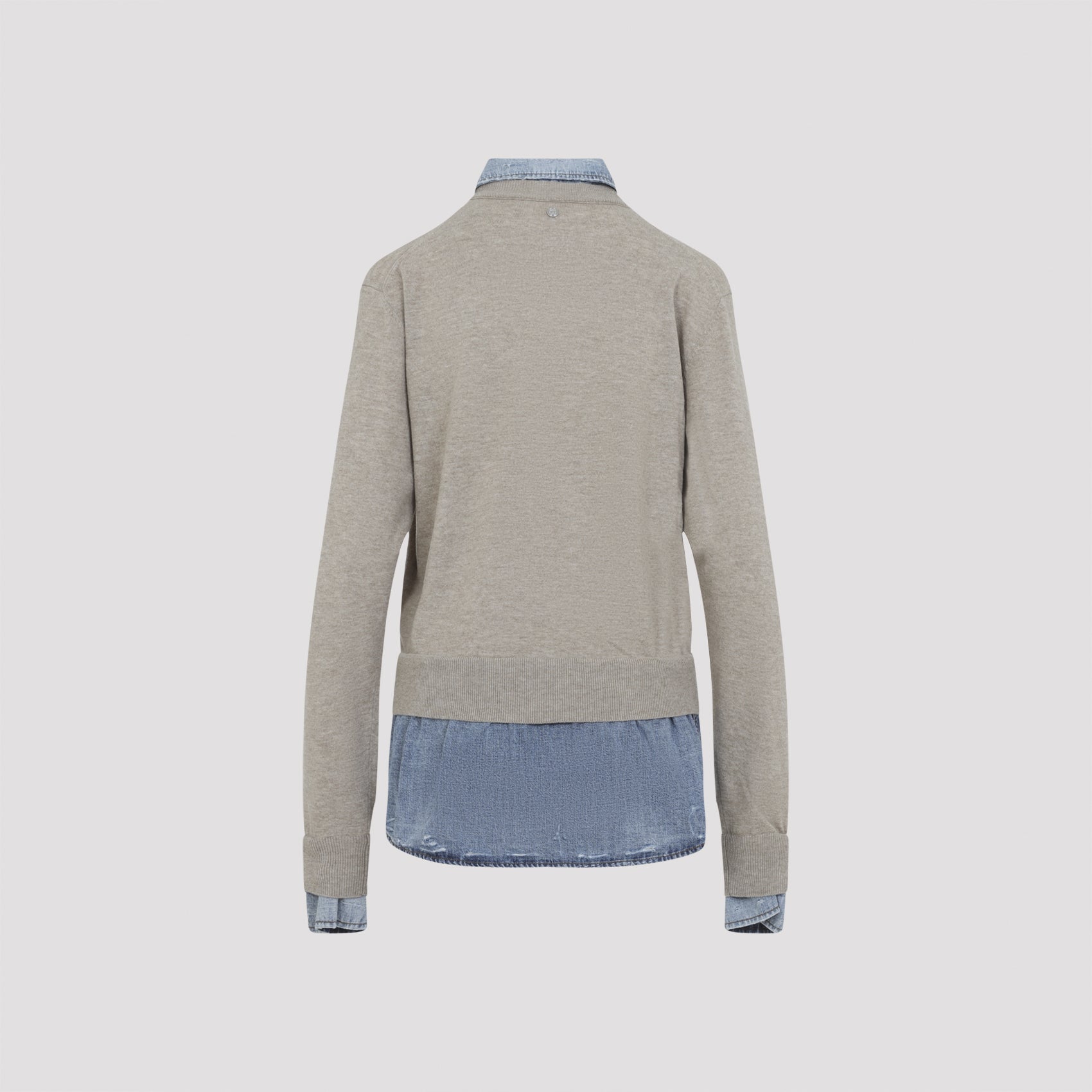 Acne Studios Beige Wool Sweater. Beige wool sweater, multi-layered design, classic pointed shirt collar, round ribbed neck, long sleeves, ribbed cuffs and hem, buttoned shirt cuffs, blu shirt hem.