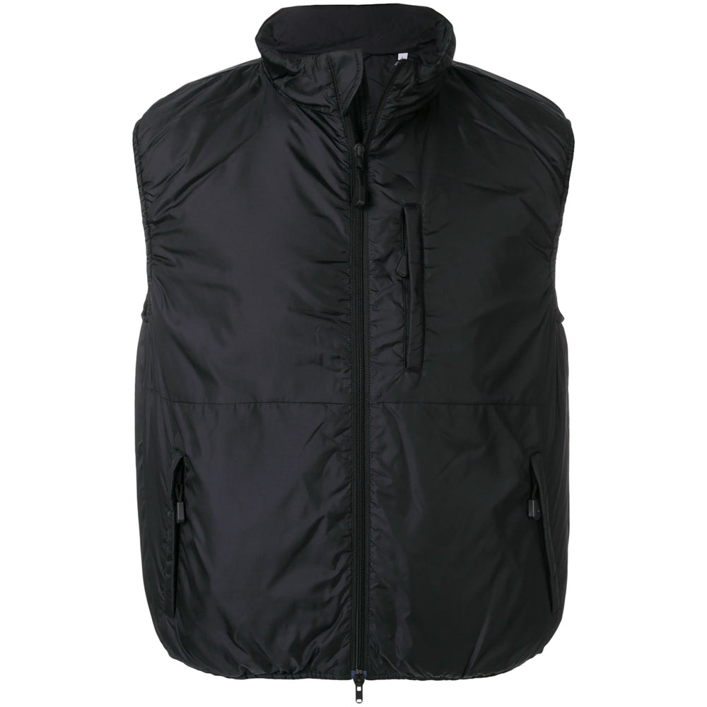 black padded design high neck front two-way zip fastening branded zip puller sleeveless two side zip-fastening pockets