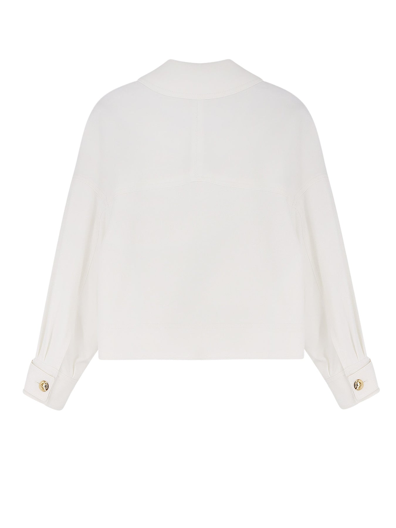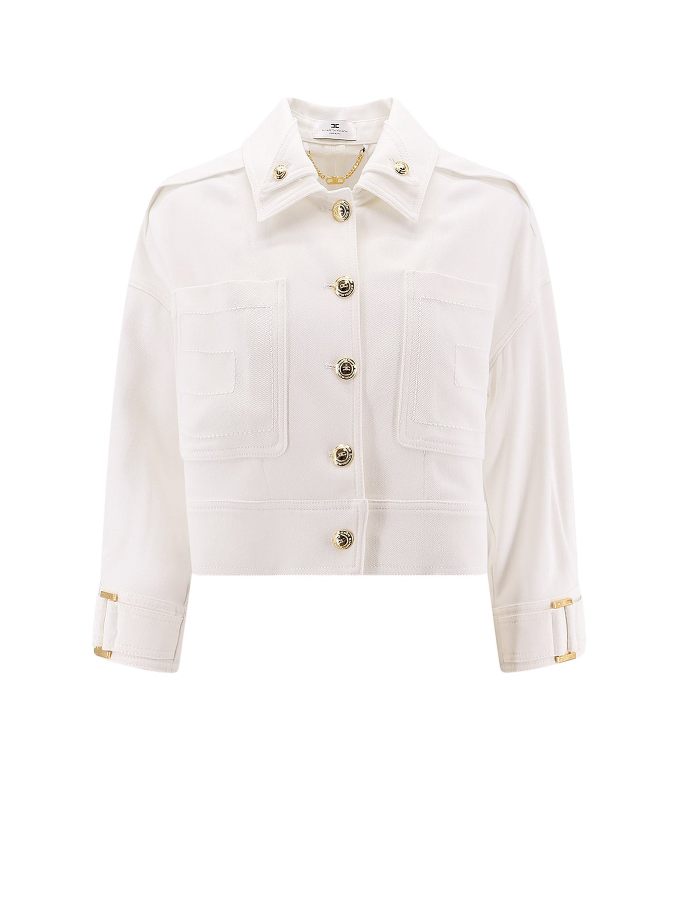 Closure with metal logo buttons Front patch pockets Monogram embroidery Long sleeves with cuffs, belt, buckle, and button Made in Italy 98% viscose, 2% elastane SKU: GB00561E2360