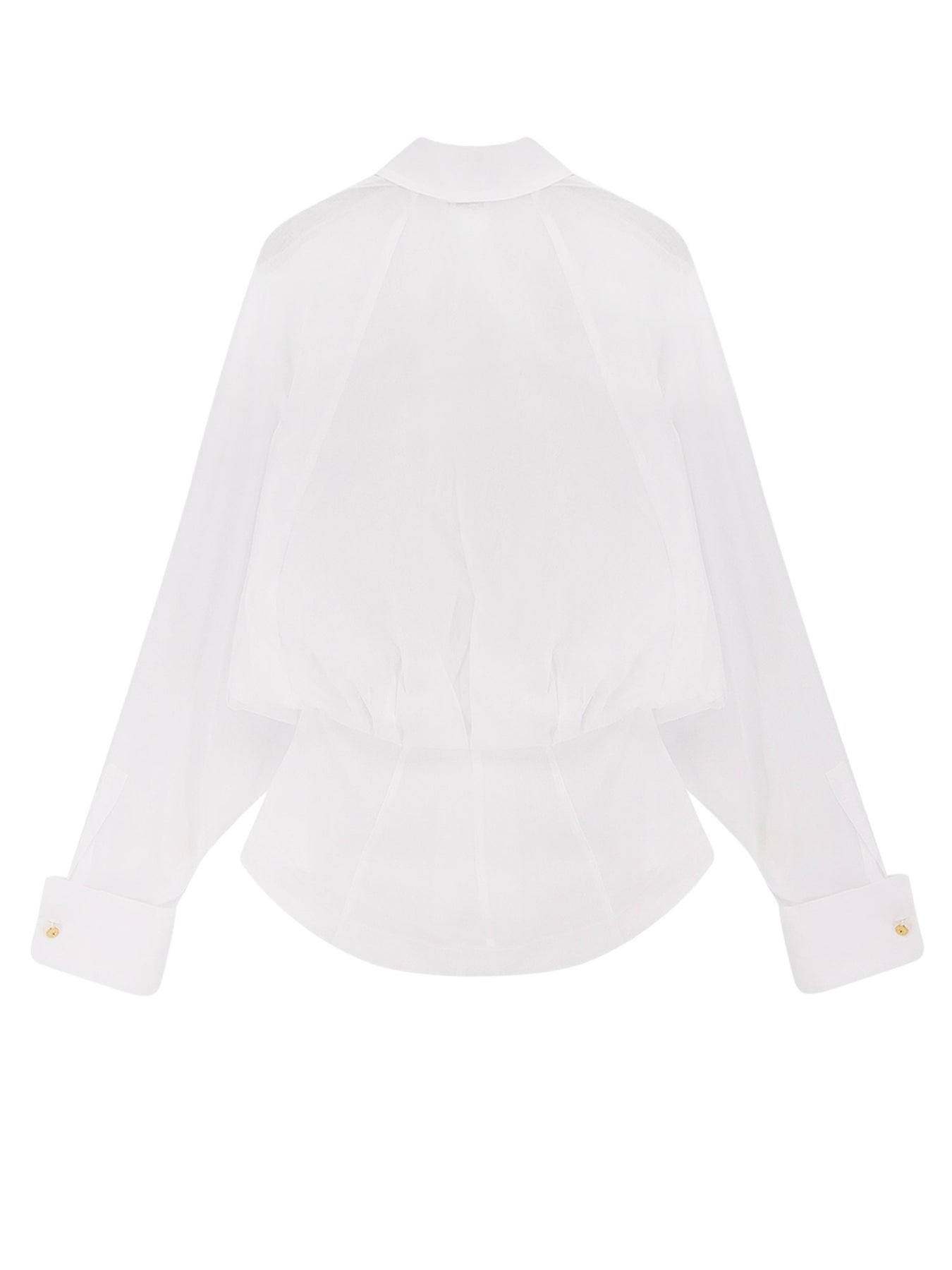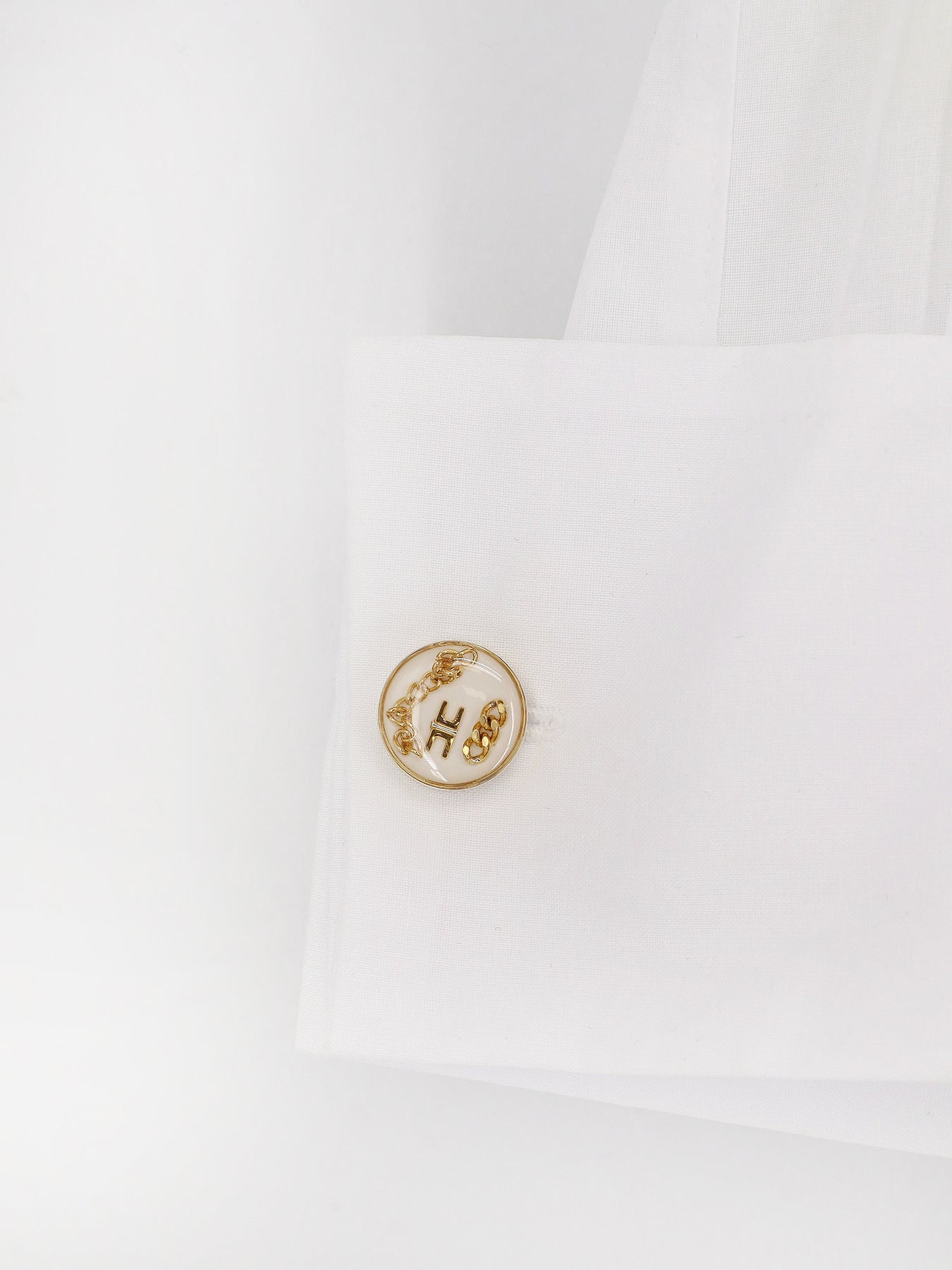 Bow tie detail Pointed collar Hidden button closure Long sleeves with double cuff and cufflinks Made in Italy 100% cotton SKU: CA15461E2221