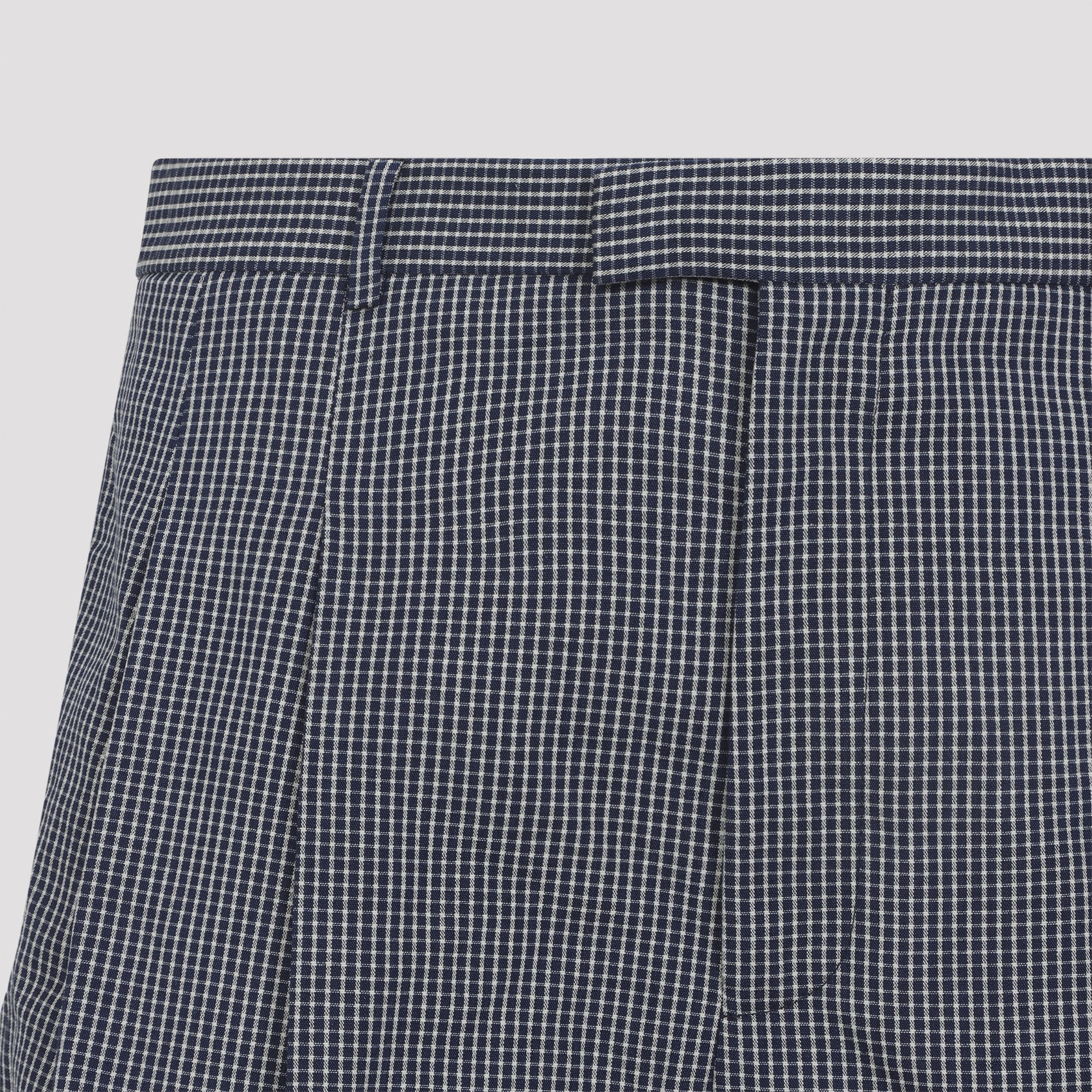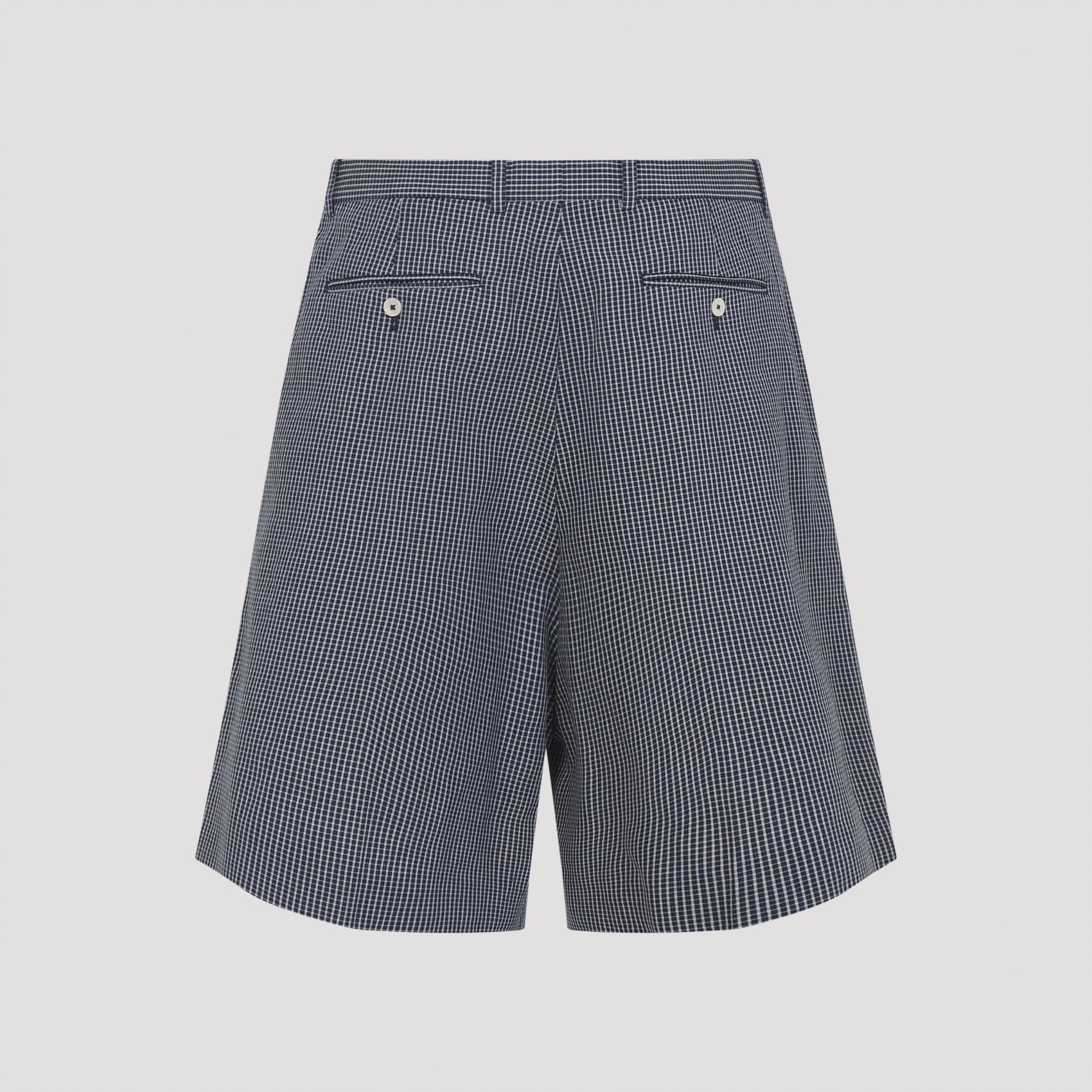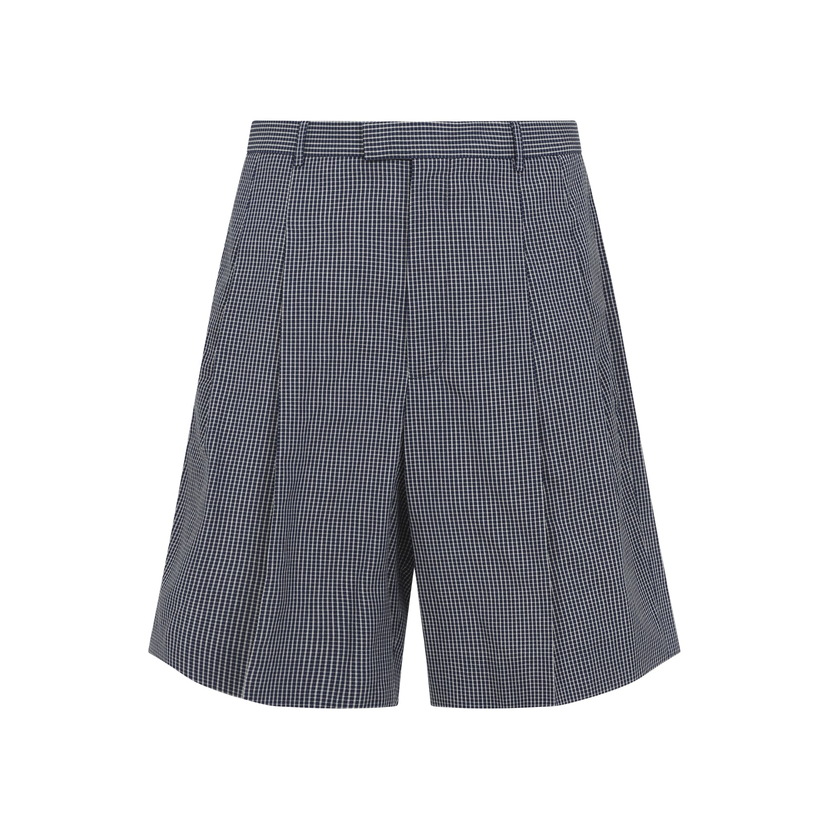 Givenchy Blue Cotton Shorts. Pure cotton shorts, front concealing zipped and hooked fastening, belt loops, side pockets, back slit buttoned pockets, front pleated details, straight hem. White and blue checked pattern all-over.