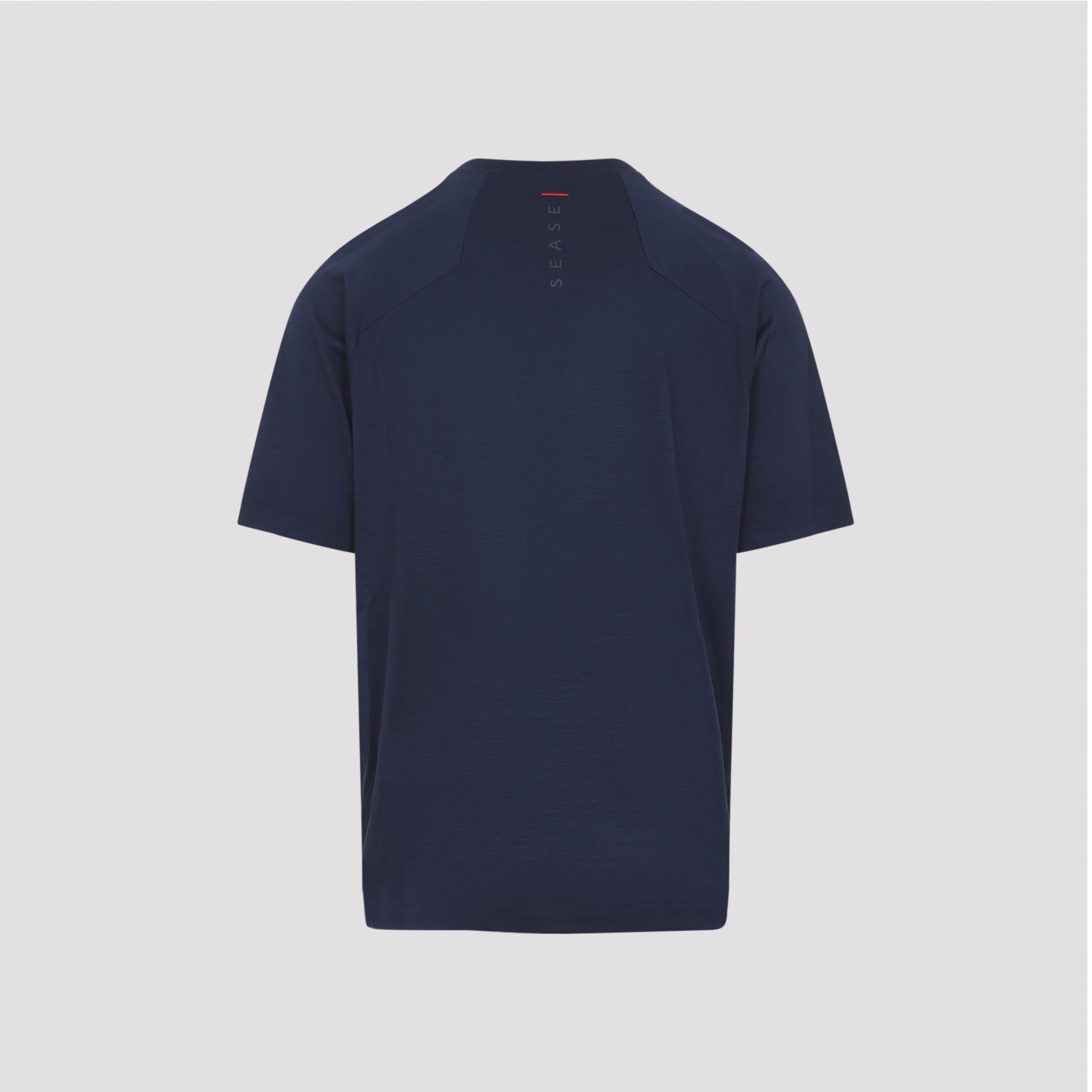 Sease Runner Blue Cotton T-shirt. Crafted from fine blue cotton, featuring a round neckline, short sleeves and straight hem.