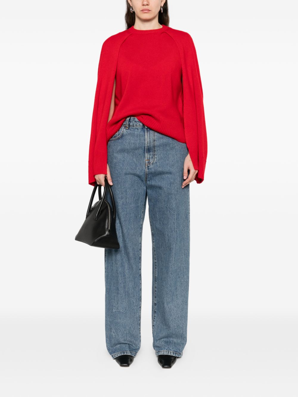 red cut-out detail round neck ribbed trims long sleeves straight hem cape