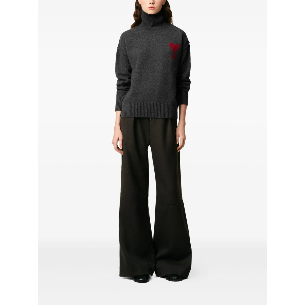 heather grey roll-neck intarsia heart motif inside-out seams