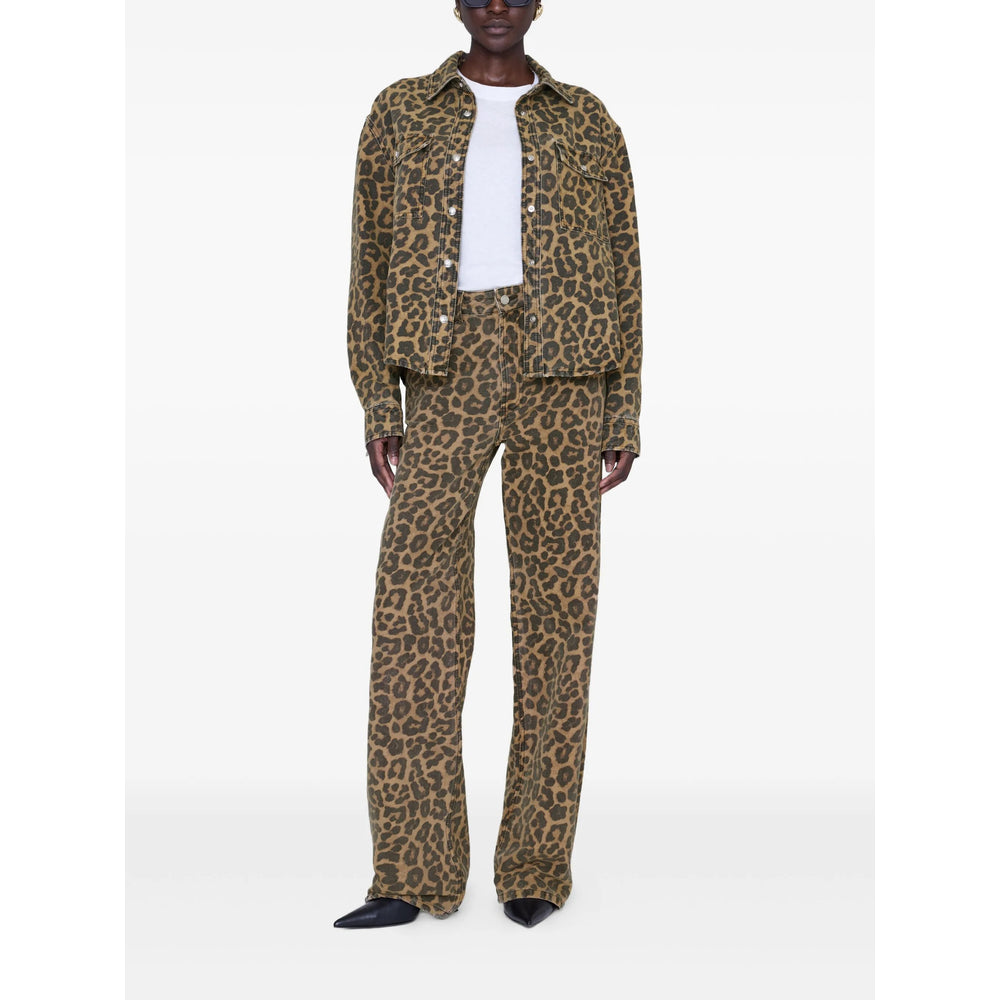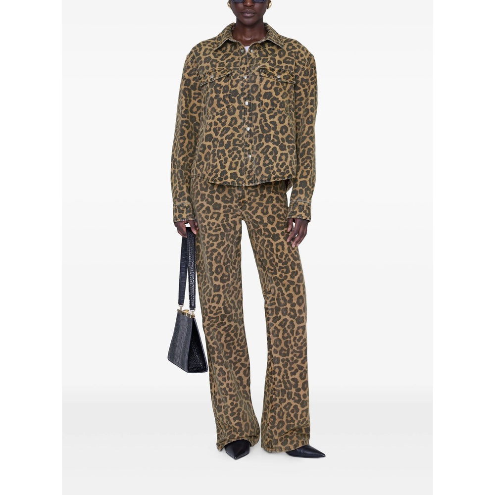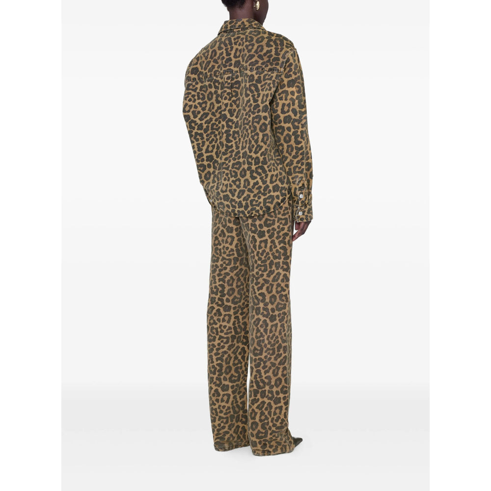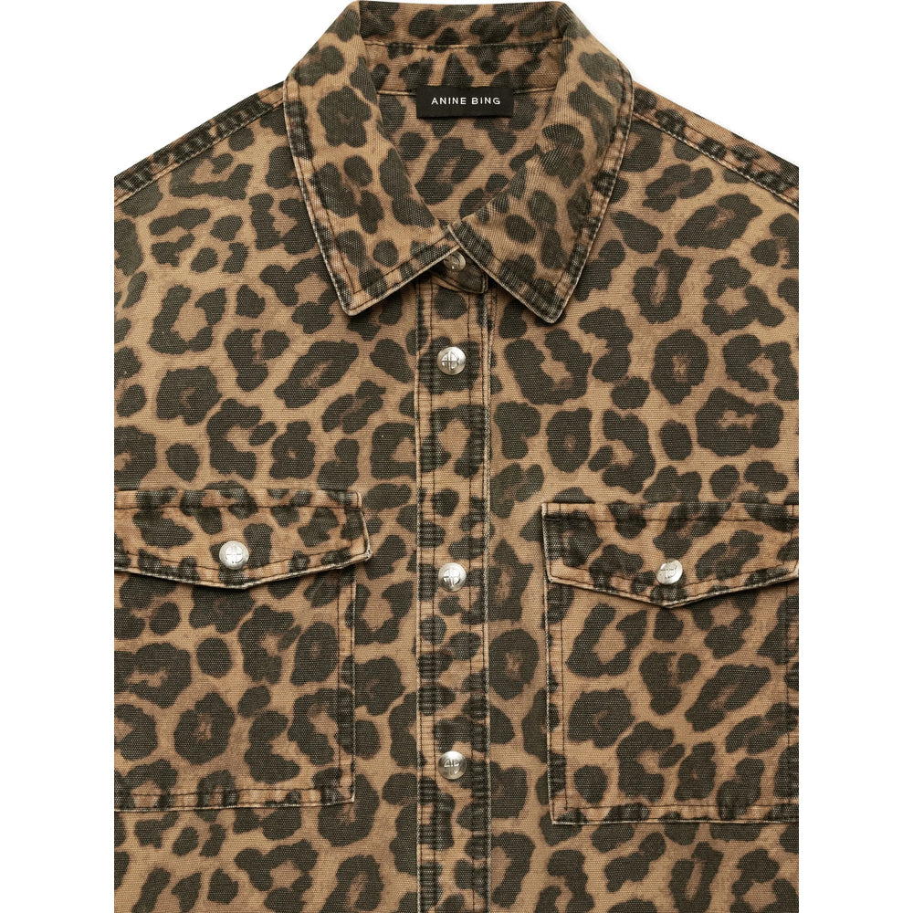 brown leopard print front button fastening classic collar two chest pockets long sleeves