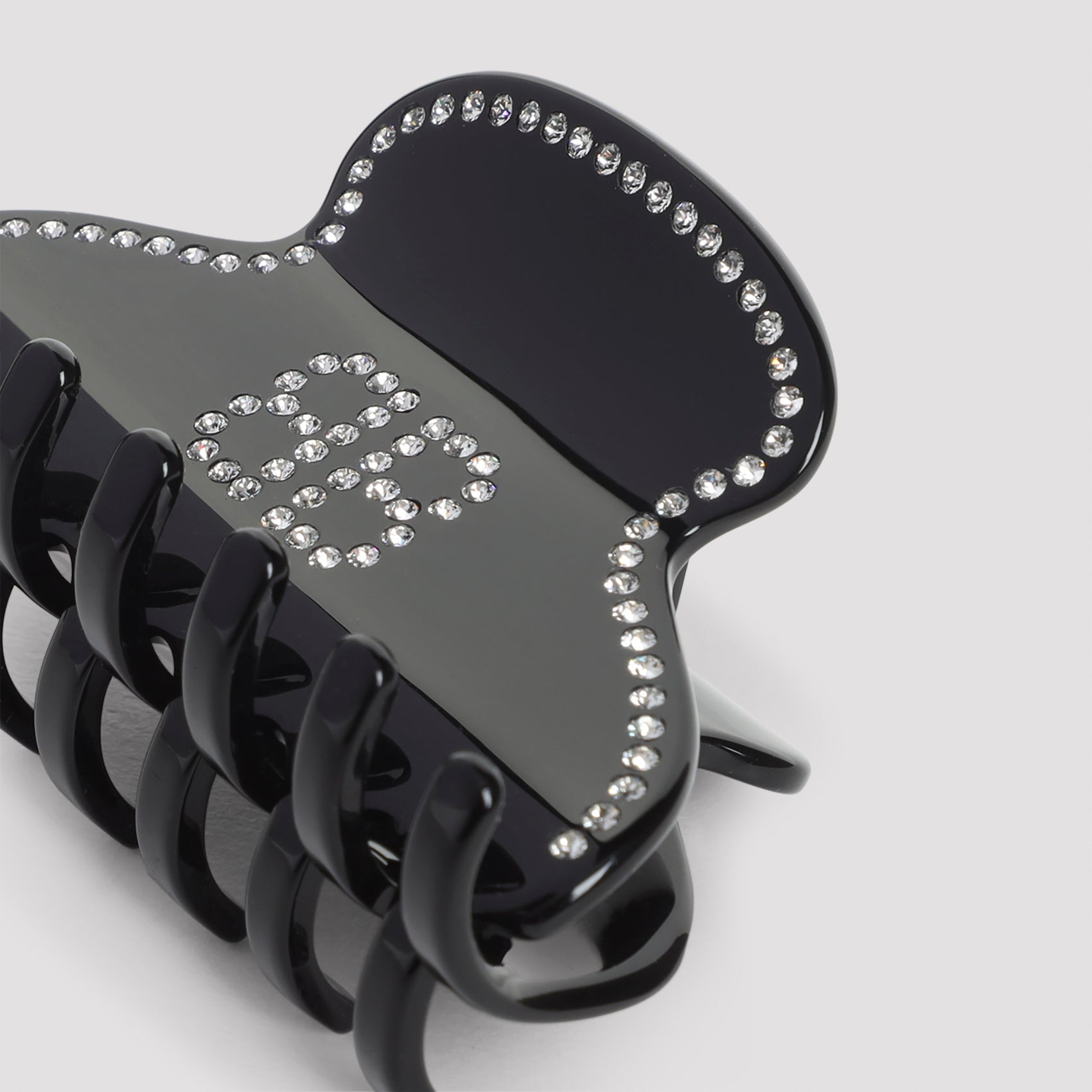 Balenciaga Holli BB Black Acetate Hair Grip. Crafted from black acetate, BB logo and trim with crystal detailing.