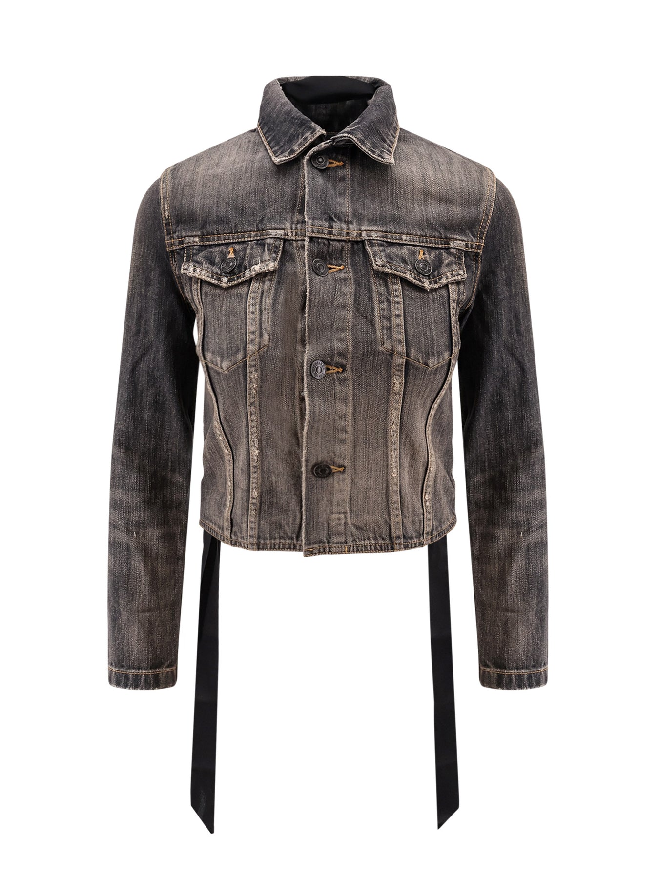 Closure with buttons and pointed collar Two breast pockets with flap and button Interwined satin laces on the back All-over logoed loops 100% cotton SKU: 831697TSW67_1441