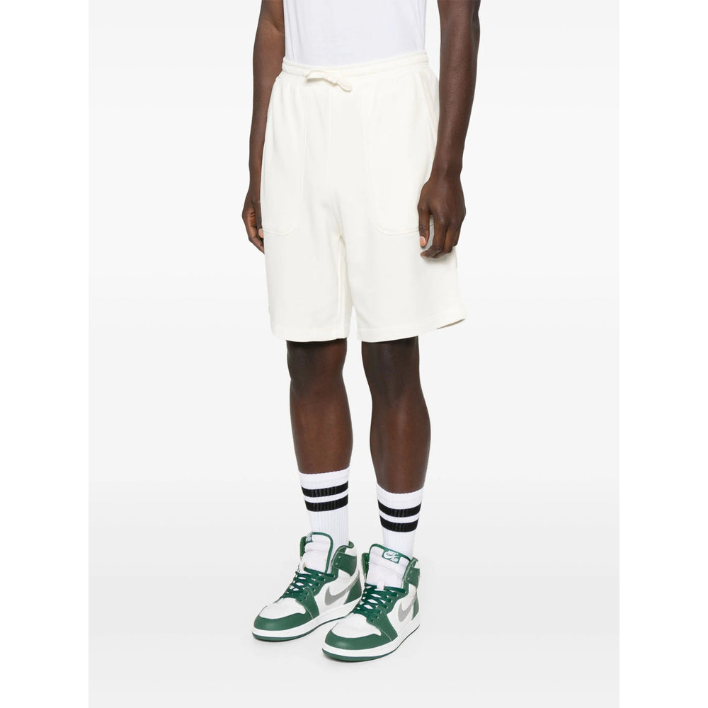 light beige elasticated drawstring waistband two side slash pockets straight hem