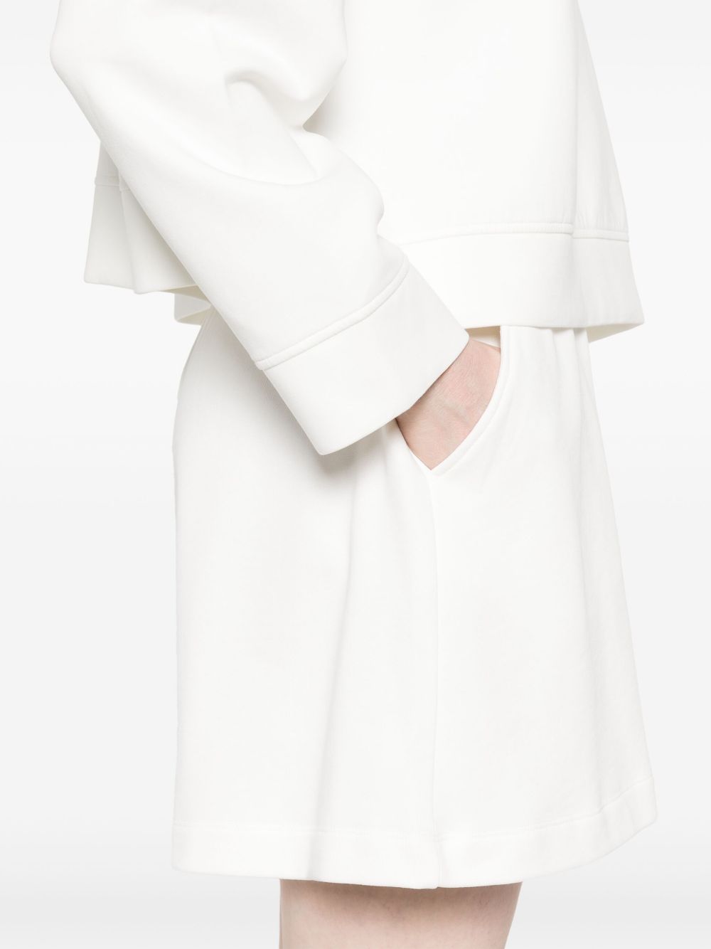 white elasticated drawstring waistband two diagonal pockets to the sides embroidered logo to the rear