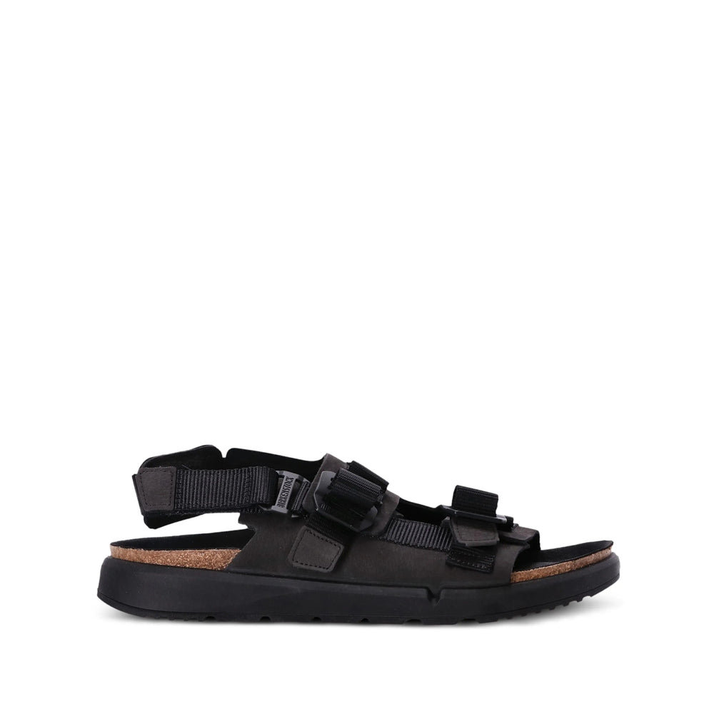 black leather grained texture tonal stitching logo-print strap open toe touch-strap fastening branded insole moulded footbed rubber sole