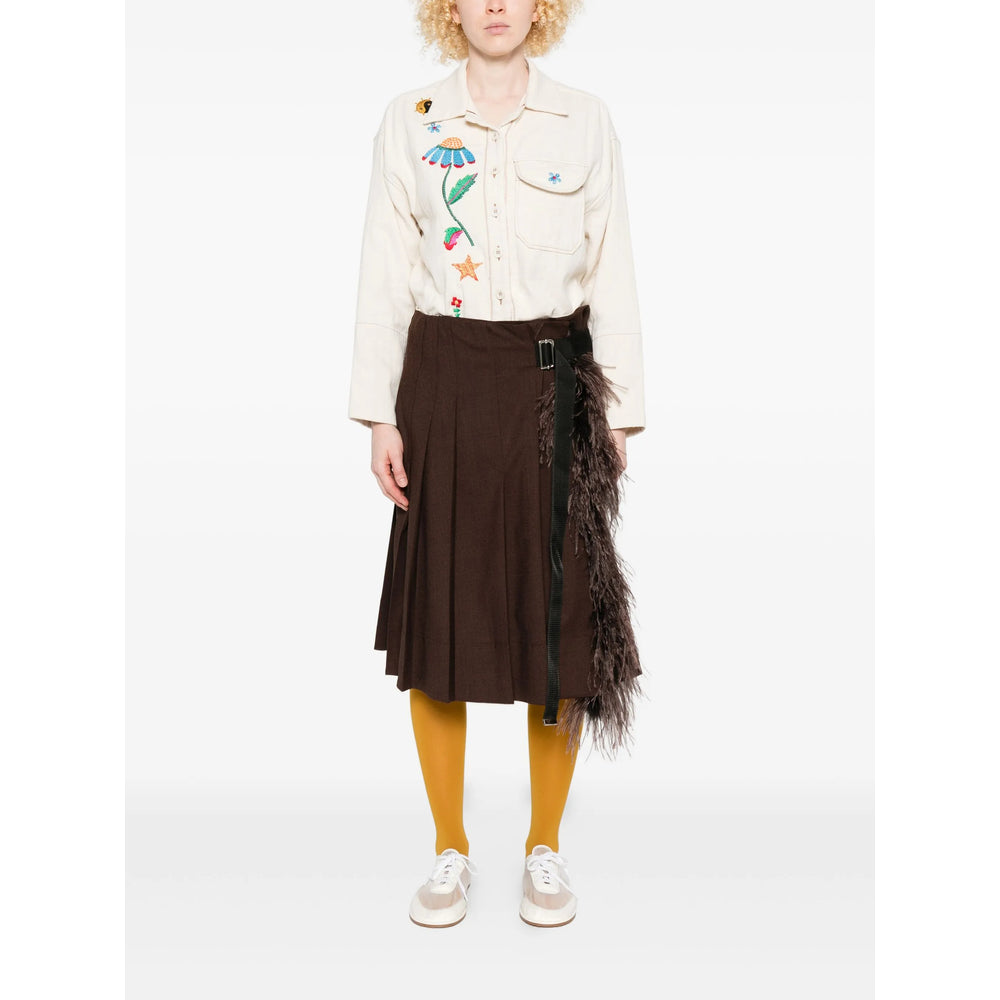 white floral embroidery palm tree embroidery button fastening chest pocket long sleeves