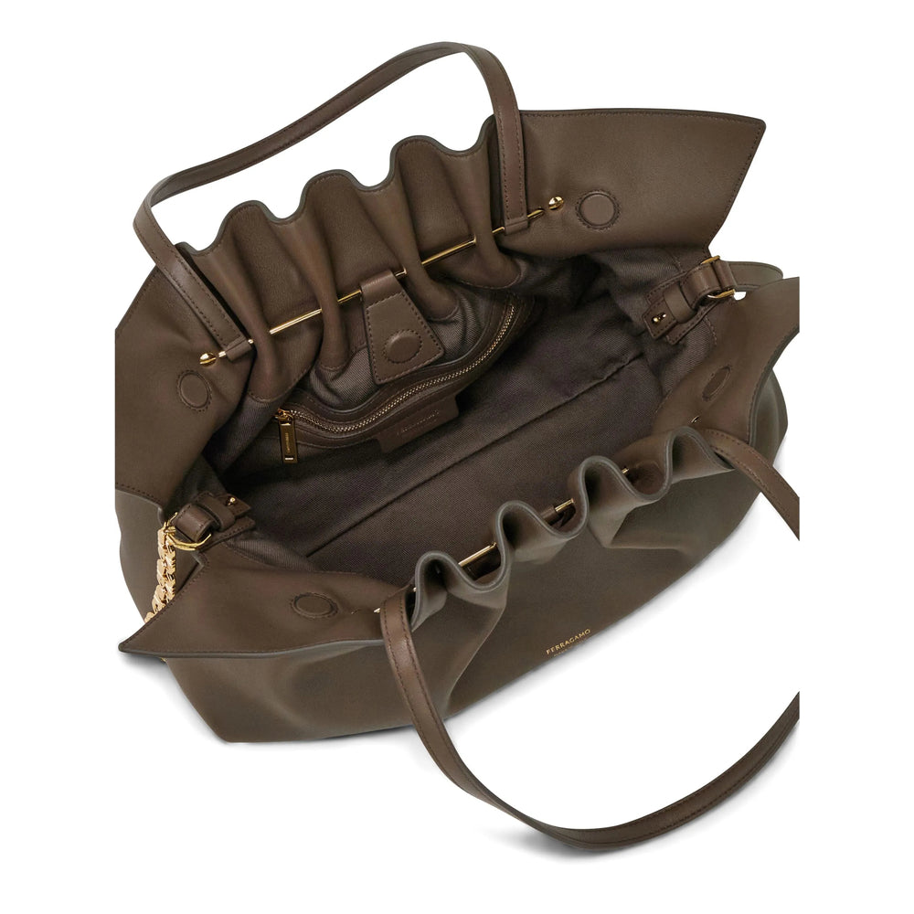 grey logo stamp to the front concealed magnetic fastening two long top handles soft bag iconic line