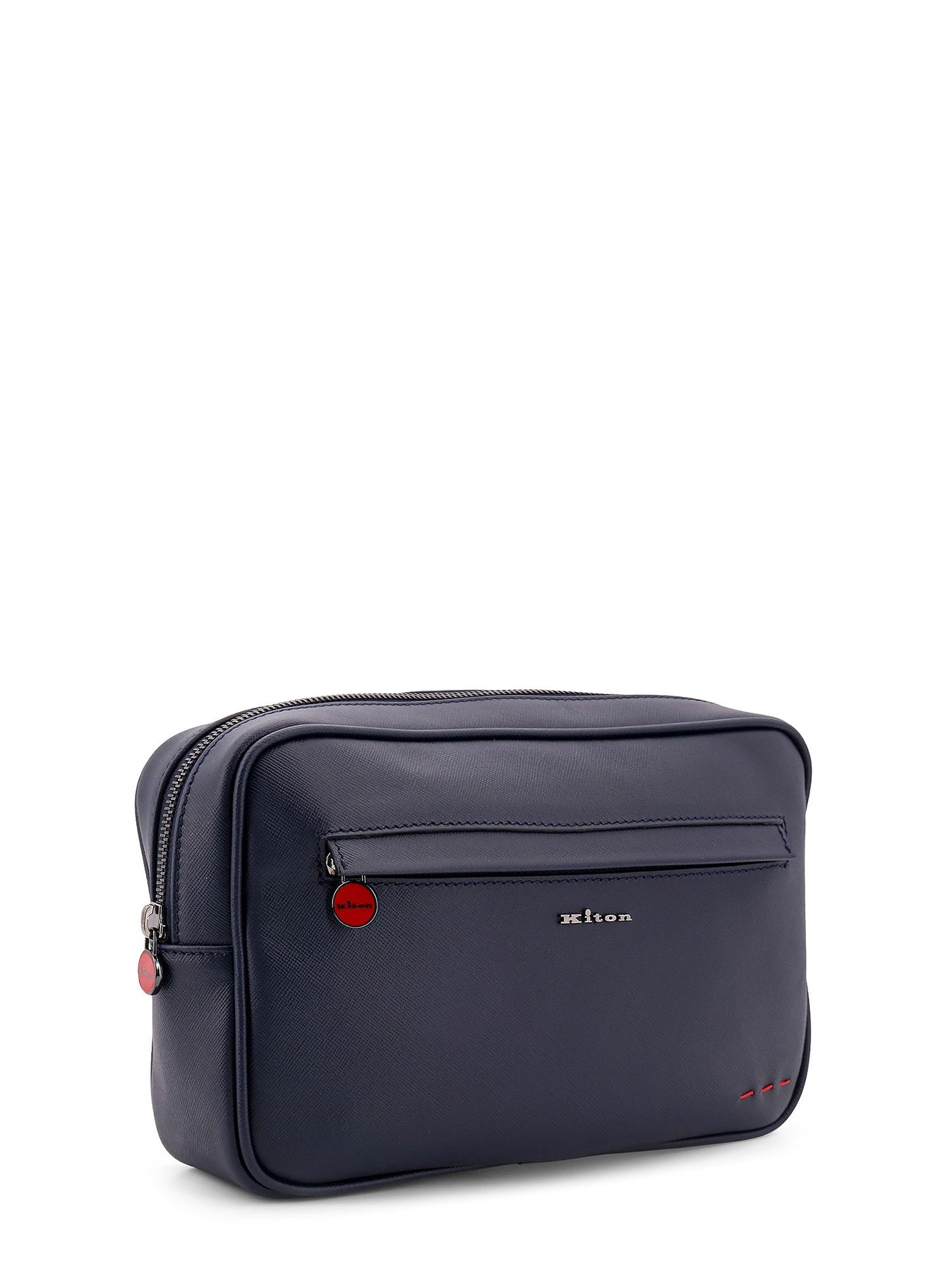 Zip closure Removable handle with metal hook Exterior zip pocket and one flat interior pocket Made in Italy Leather Lining: Cotton W: 25 cm x H: 16.5 cm x D: 6 cm SKU: UBA0011N0126902BLUE