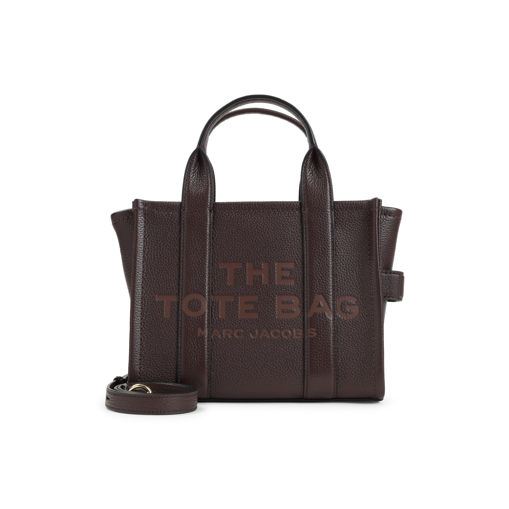 Marc Jacobs The Leather Mini Tote Ganache Bag. Ganache leather, top zip fastening, tonal top handle. 1 interior zip pocket, 1 slip pocket, 1 card slot, front logo lettering. Matching detachable shoulder strap.