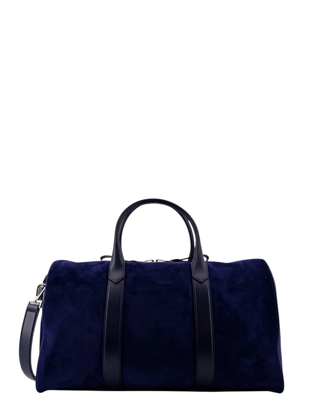 Borsa da viaggio in suede con logo inciso frontale Doppio manico in pelle Chiusura con doppio cursore Dettaglio lucchetto in metallo Una tasca con zip interna Made in Italy Pelle L: 52 cm, A: 30 cm, P: 22 cm ID H0724LCL323SUDB