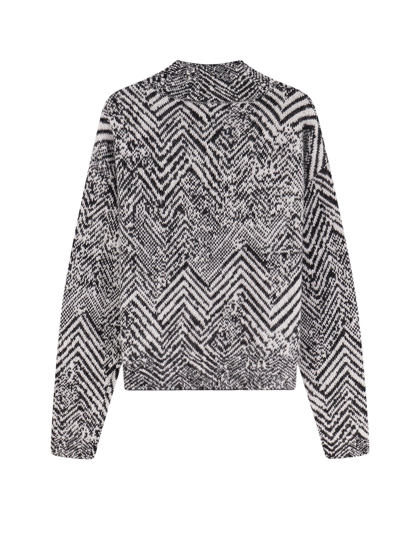 High Collar Long sleeve Boxy fit Cropped Black/white intarsia 55% mohair, 30% recycled polyamide, 15% wool SKU: 50547925960