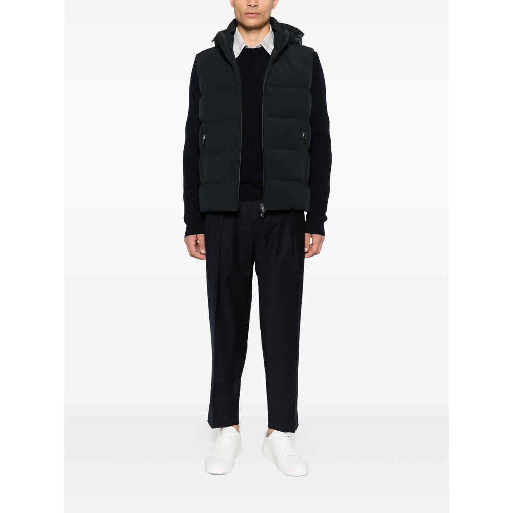 midnight blue pleated front side pockets button fly straight leg elasticated waistband