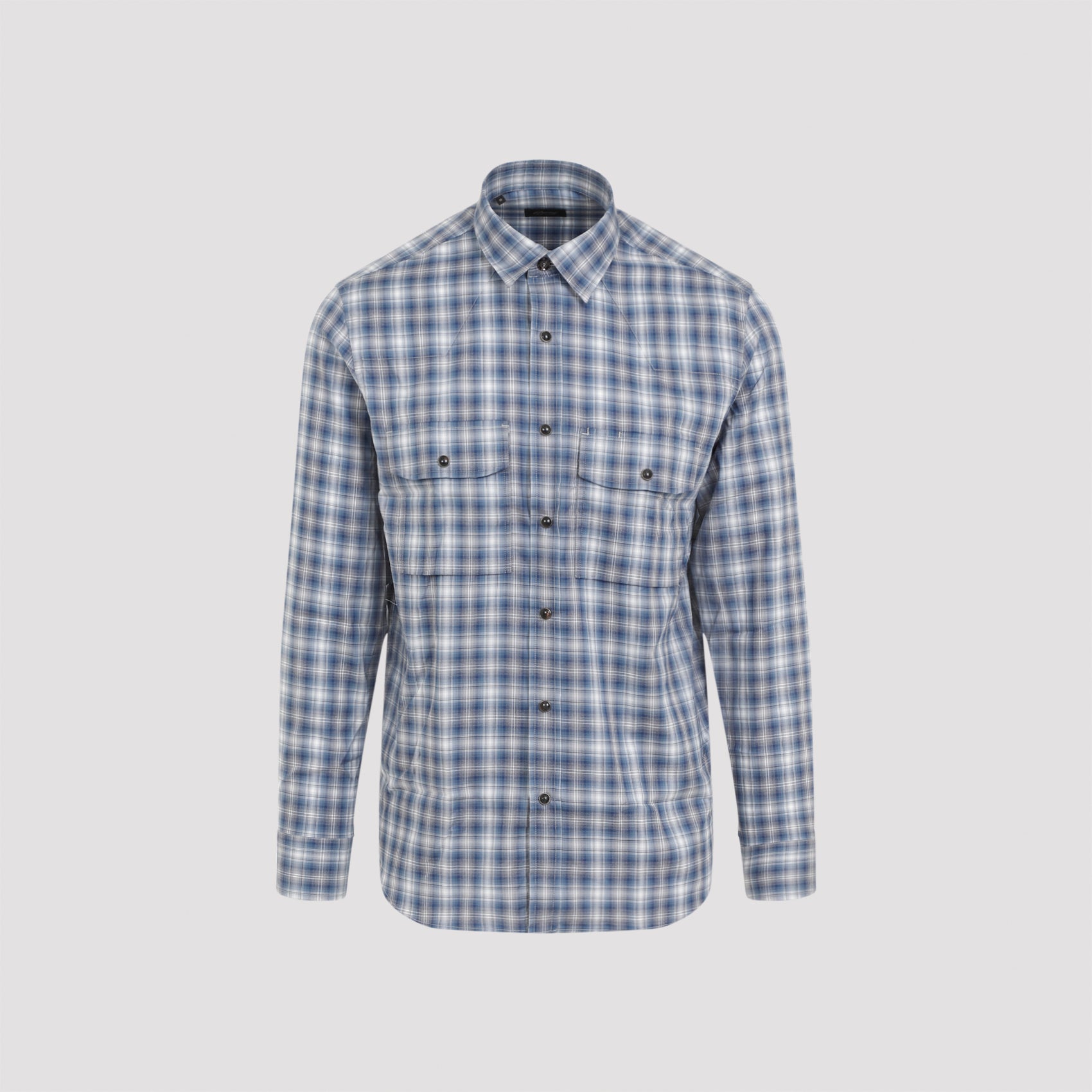 Brioni Blue Cotton Shirt. Crafted from checkered blue and white cotton, pointed collar, front button closure, two flap pockets on the breast, back yoke, buttoned cuffs, round hem.