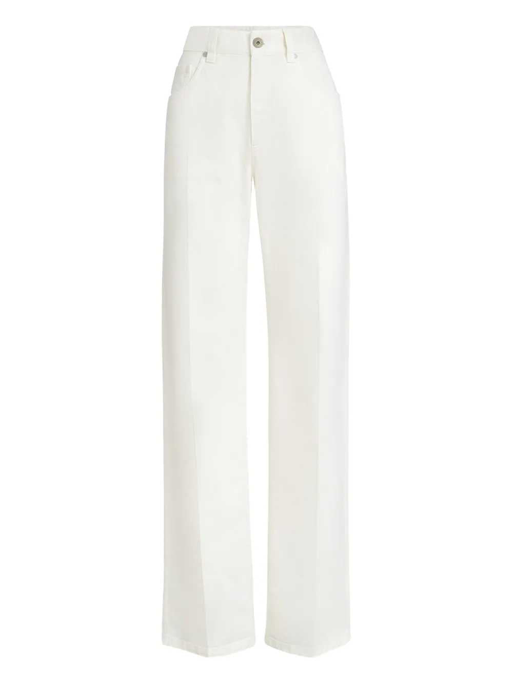 Pantaloni con decorazione Origine: Italia Caratteristiche bianco effetto denim passanti cinque tasche cuciture tono su tono applicazione posteriore con logo Composizione cotone 100% Istruzioni per il lavaggio Leggi le indicazioni del produttore ID M0H81P5568