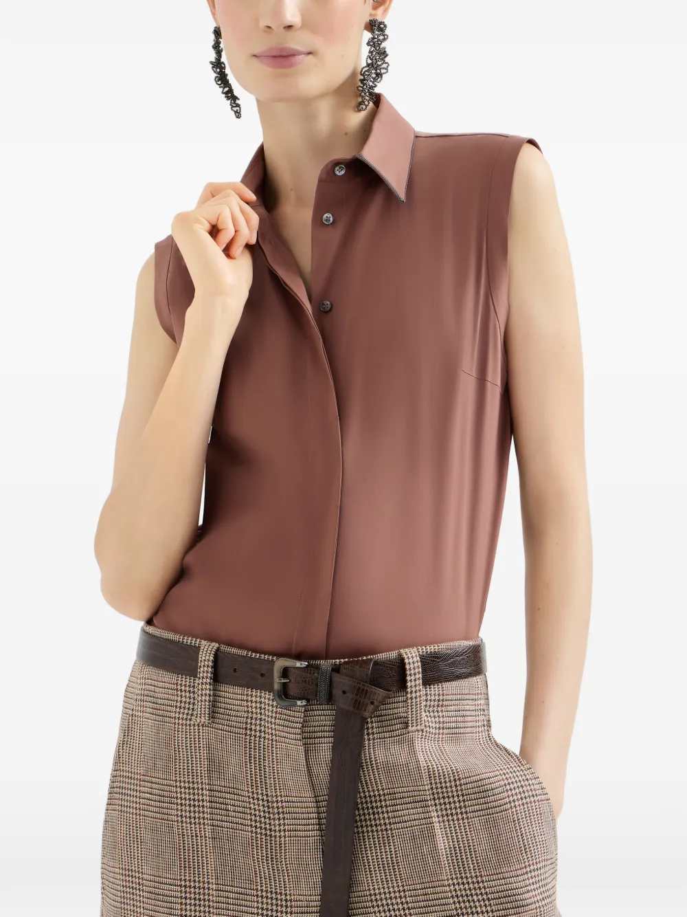 Camicia smanicata Origine: Italia Caratteristiche arancione senza maniche chiusura a bottoni Composizione cotone 72%, poliammide 23%, elastam 5% Istruzioni per il lavaggio Leggi le indicazioni del produttore ID M0091MA616
