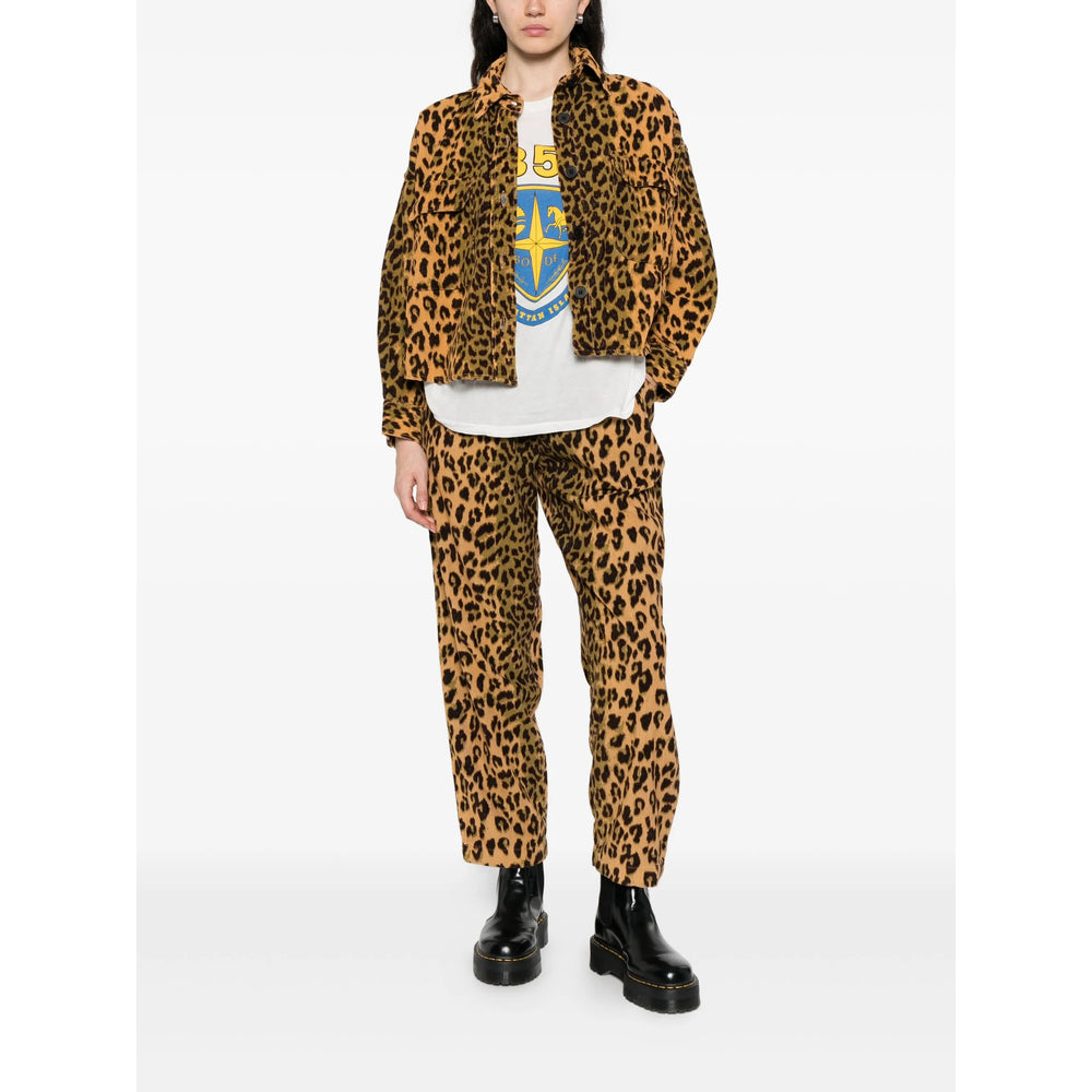 sand brown leopard print button fastening two flap pockets