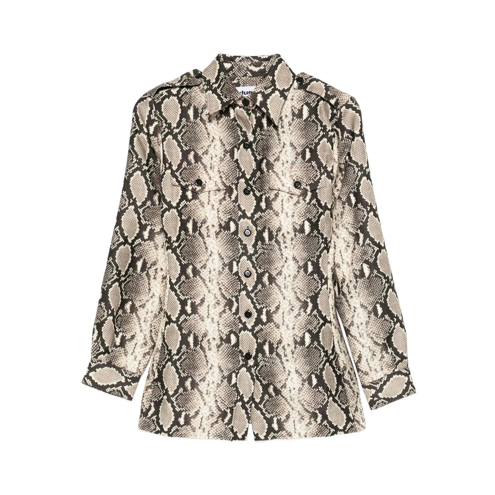 black snakeskin print collared neckline long sleeves button fastening