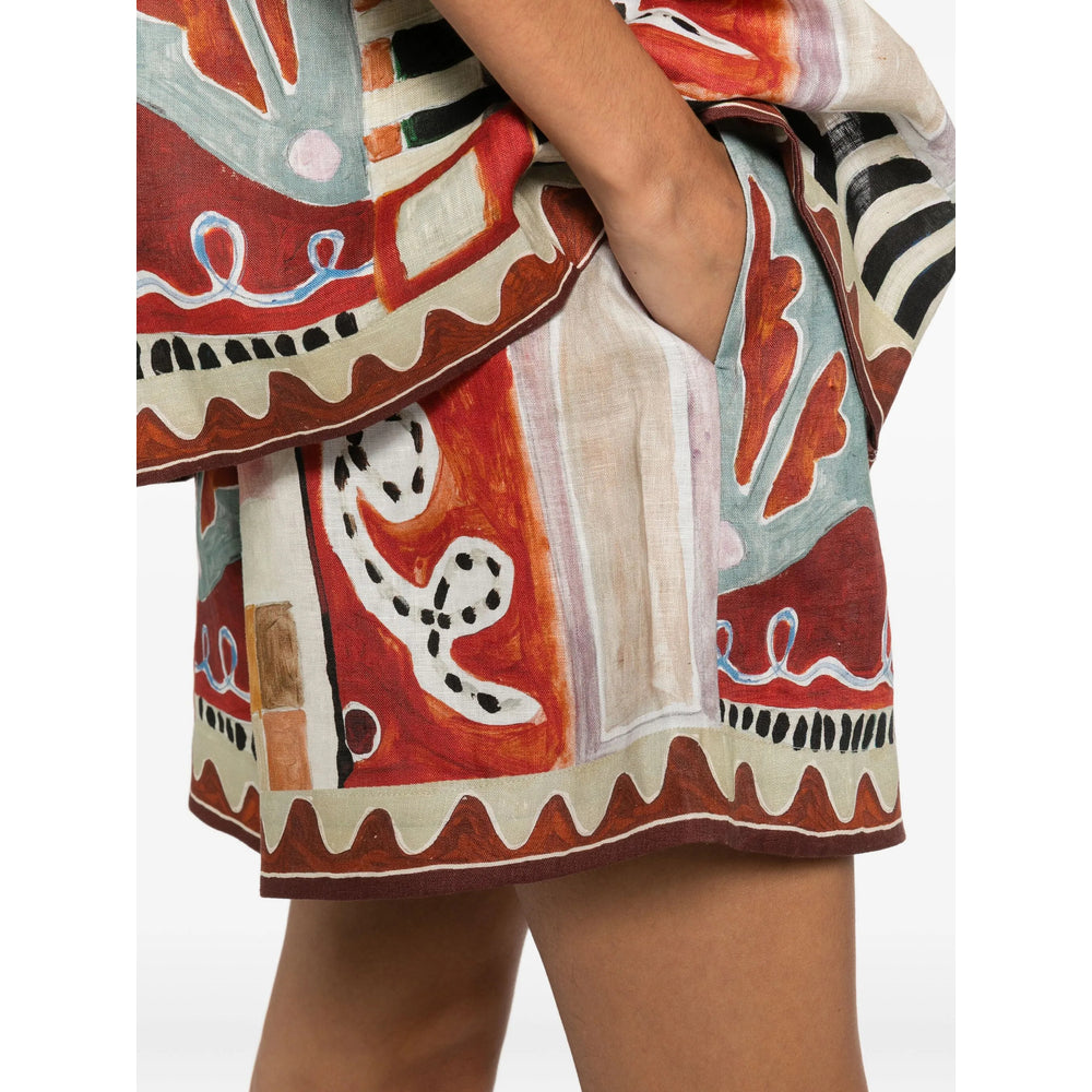 brown multicoloured abstract print elastic waistband drawstring fastening