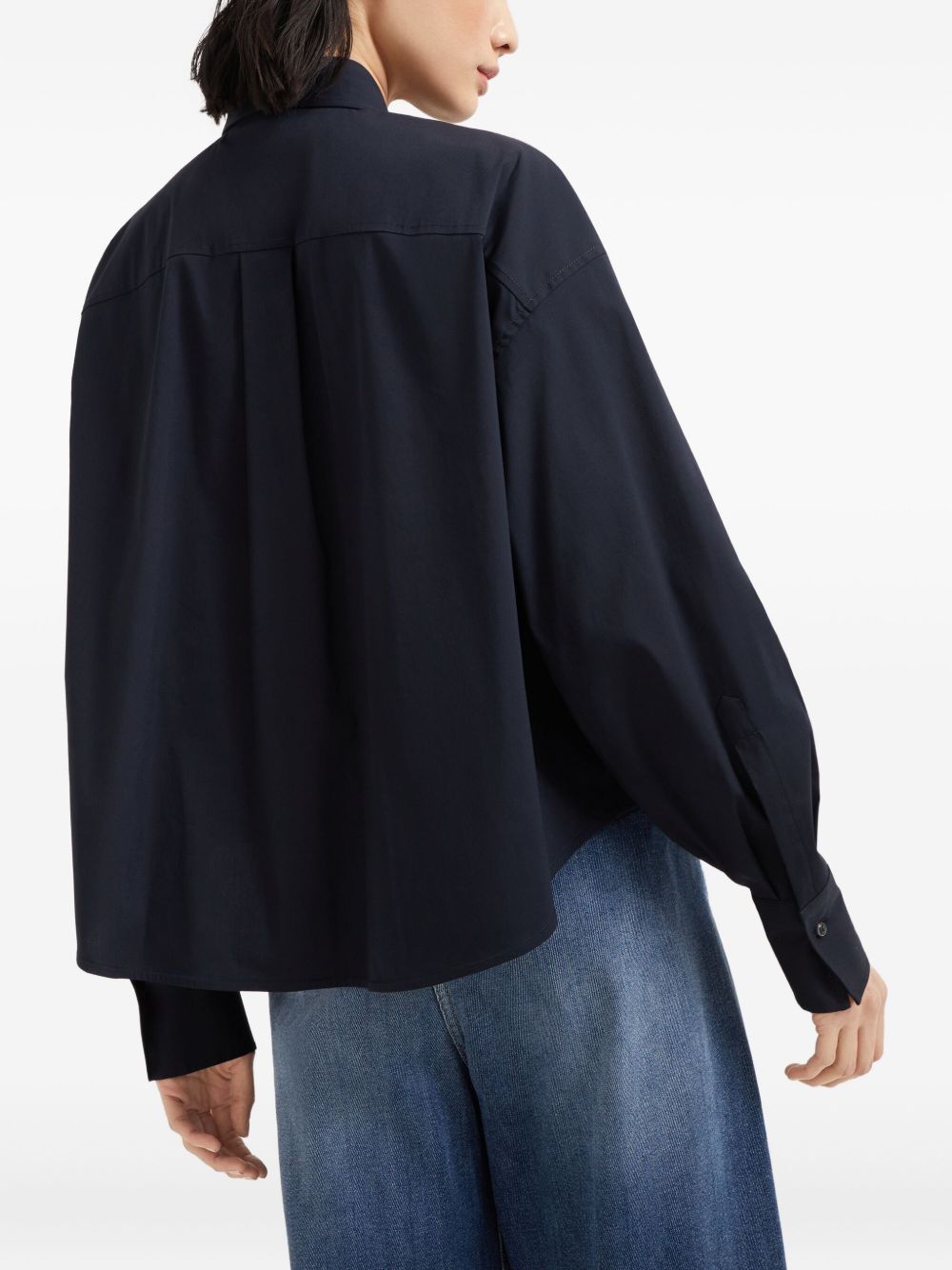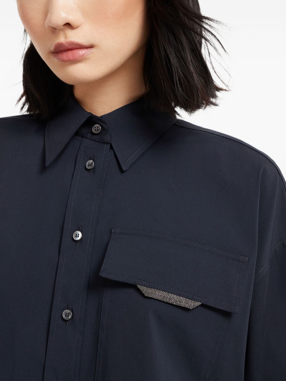 navy blue front button fastening chest flap pocket classic collar long sleeves