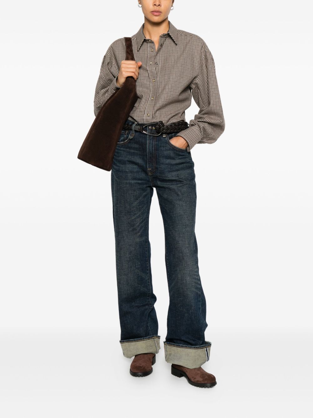 brown check pattern button fastening long sleeves buttoned cuffs straight-point collar