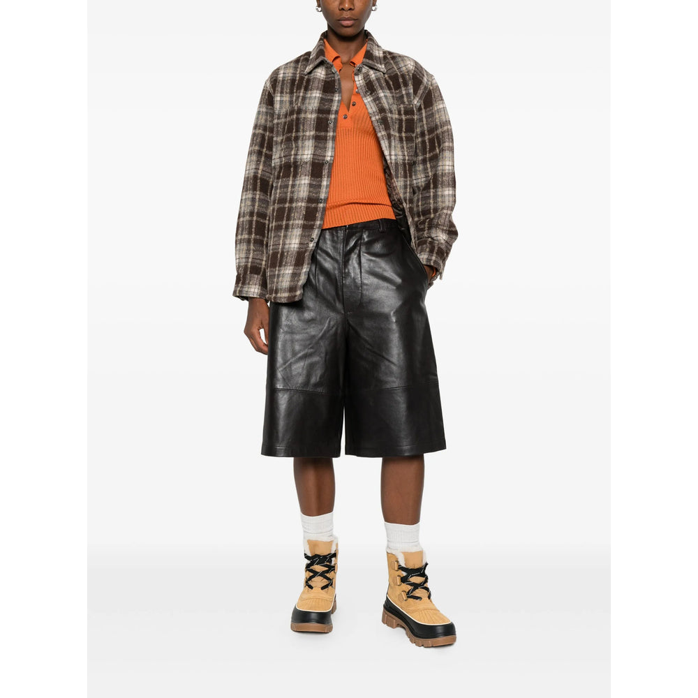 brown checked pattern chest patch pockets front button fastening long sleeves curved hem