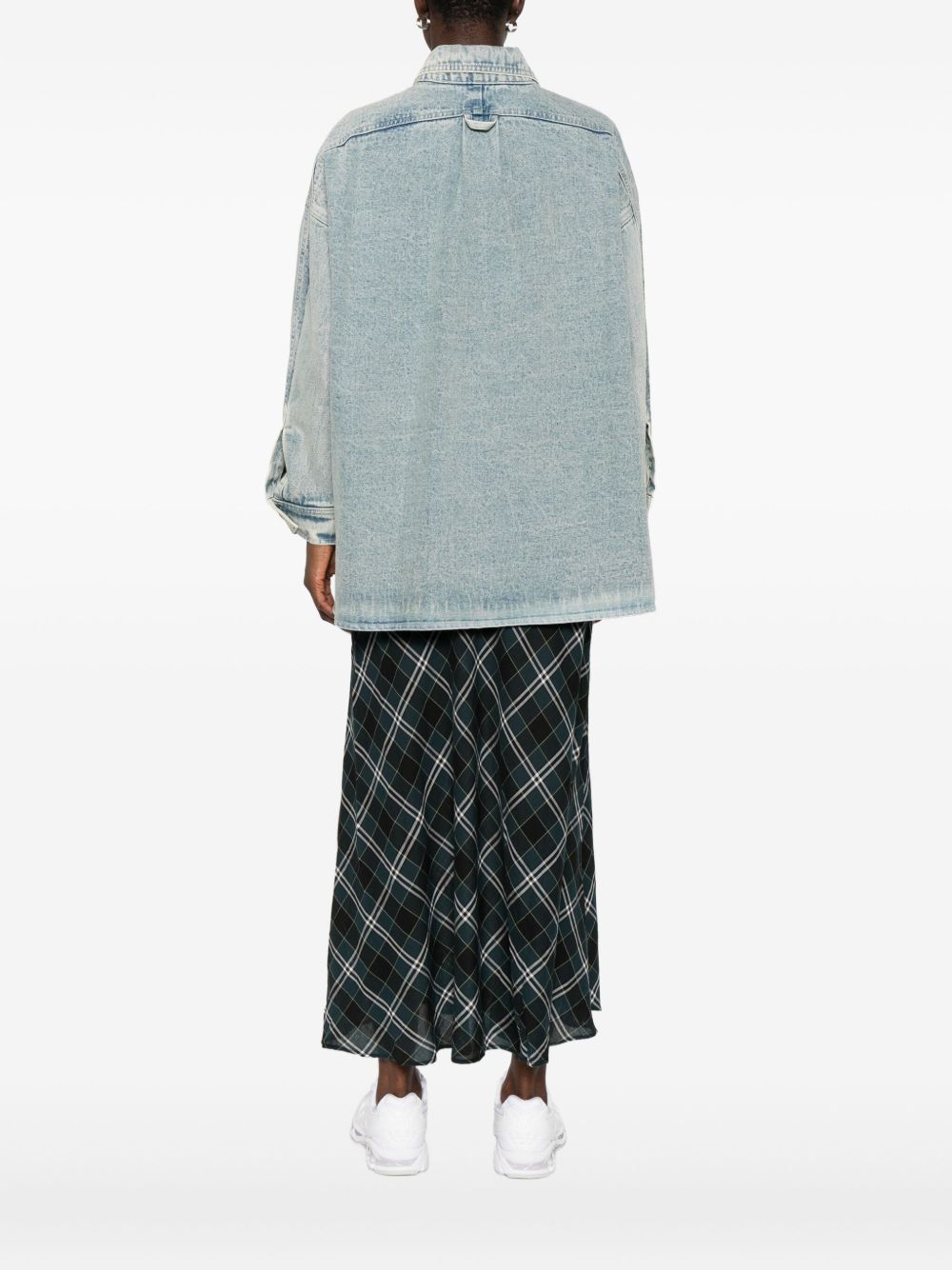 blue floral appliqué patch detail front button fastening chest pocket long sleeves