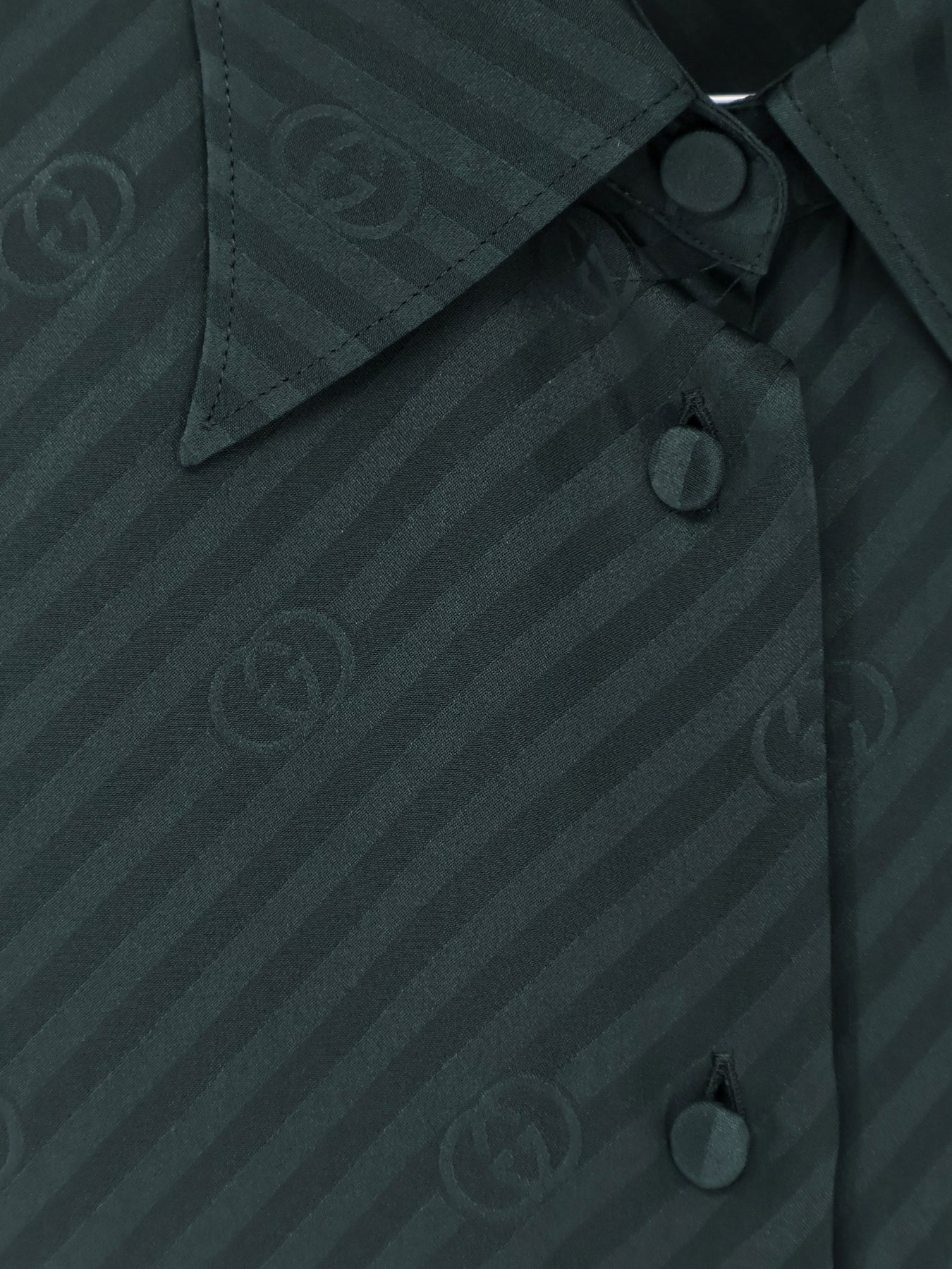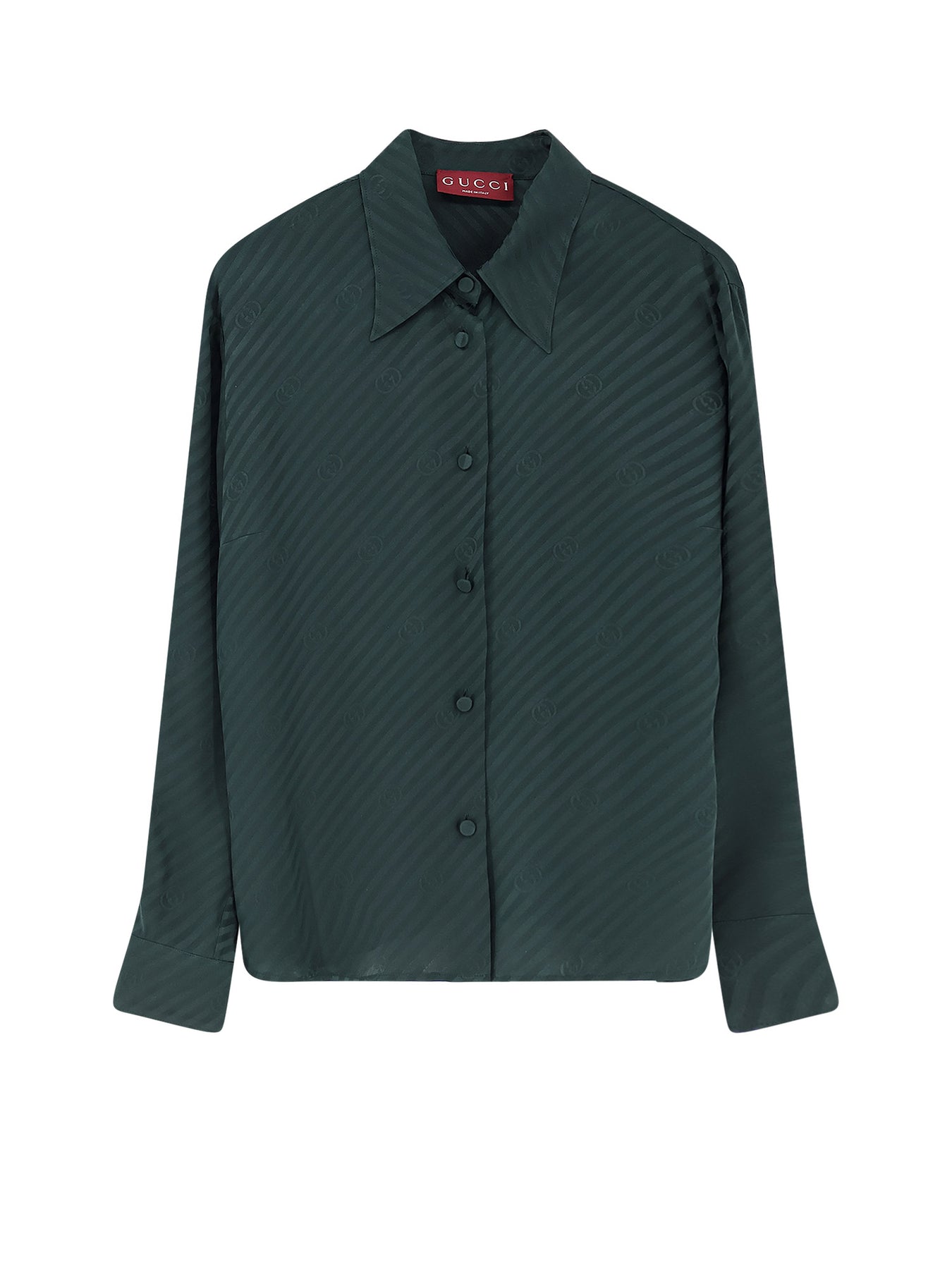 GG Incrocio detail Closure with covered buttons Pointed collar Long sleeves with double-button cuffs Made in Italy 100% silk SKU: 851629ZAM5B3514