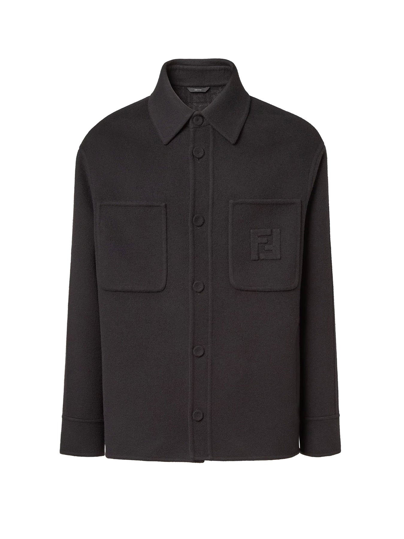 Covered button closure Double patch pocket Two vertical pockets FF motif lining Made in Italy 99% virgin wool, 1% silk SKU: FW1500AVIXF1FL8